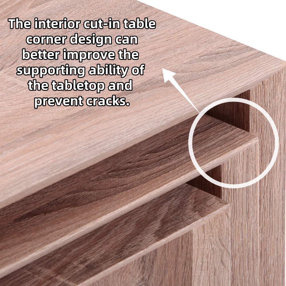 Nest of 3 Tables in Light Brown,Wood Coffee Table Set for Living Room, Multi-functionaLEnd Side Table, Stackable Space-Saving Modern Furniture, Versatile Design