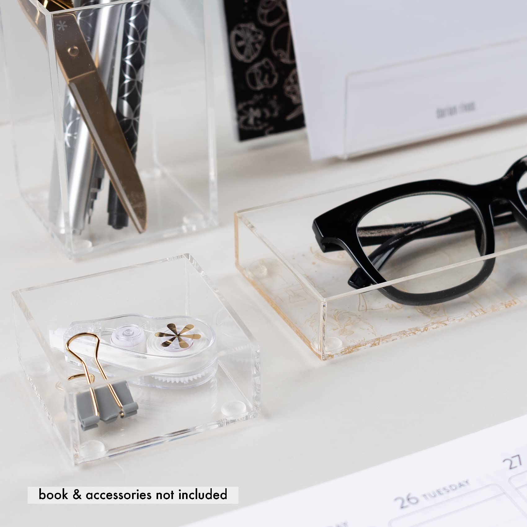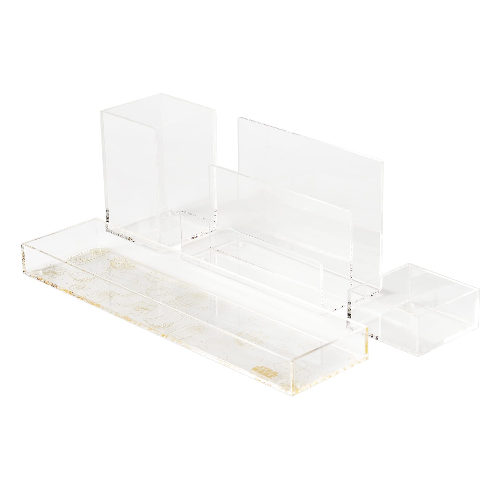 Nesting Acrylic Desk Organizer Set (4 Pieces) with Metallic Gold Accents, Includes Pen Cup, Letter Sorter, and Accessory Trays, Elegant and Modern Organizer for Desk or Vanity