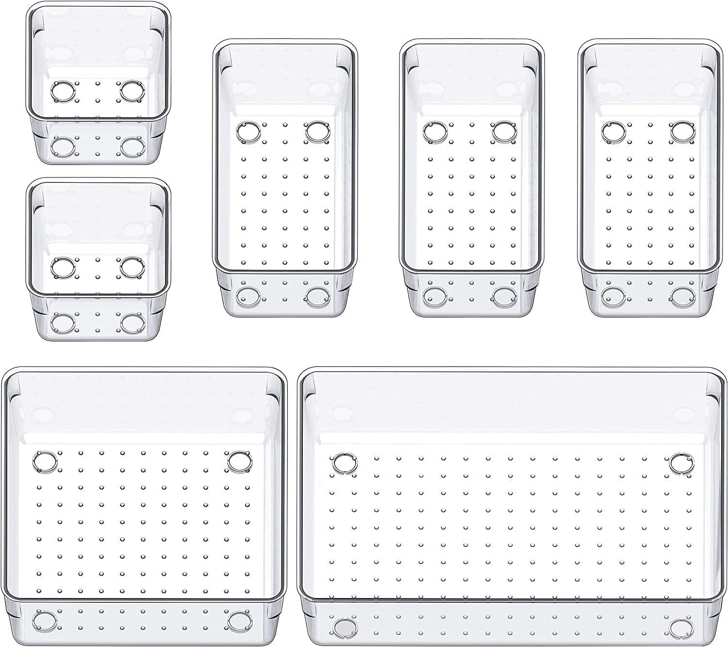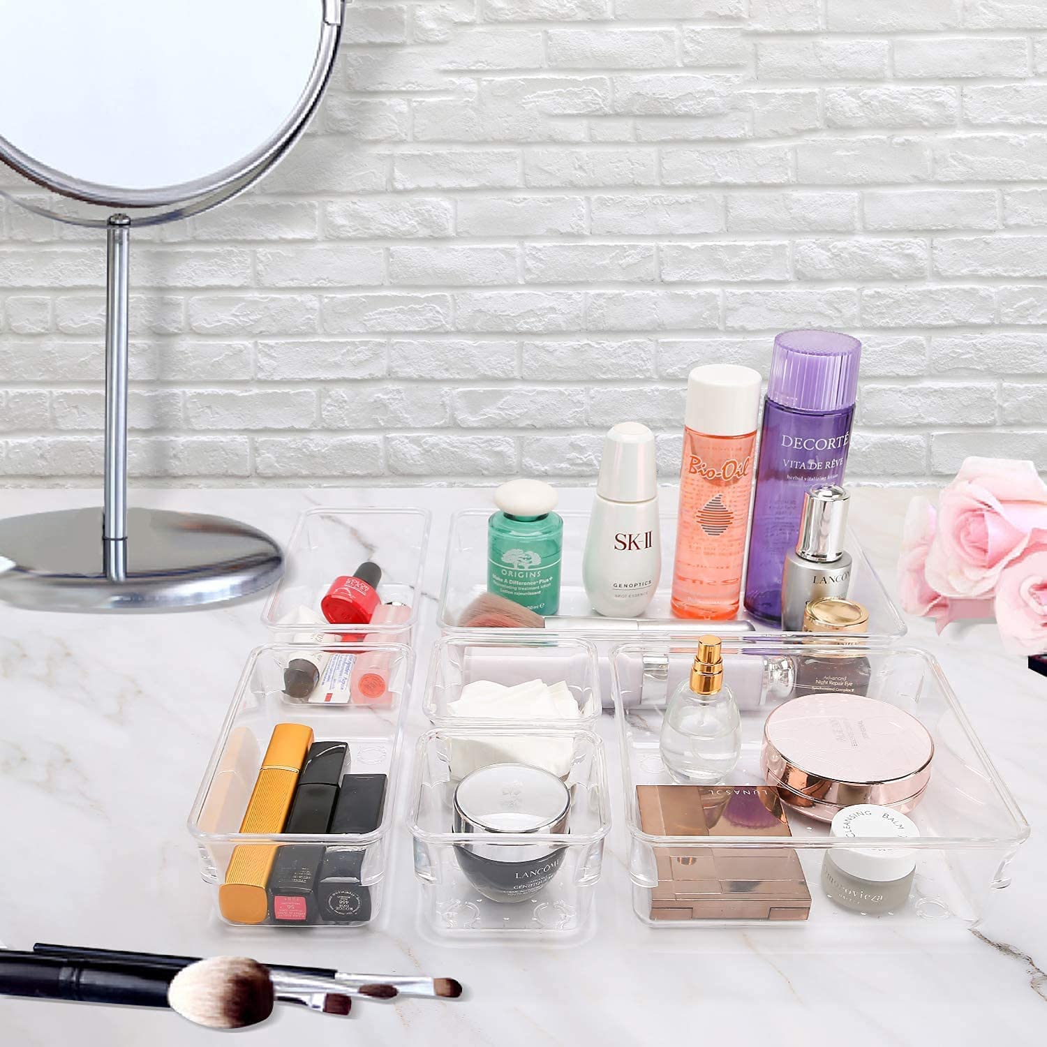 Niwlix Drawer Storage Organizer, Versatile Bathroom and Vanity Drawer Cosmetic Organizer Trays, Storage Bins for Makeup, Bedroom, Kitchen Gadgets Utensils and Office 7Pcs Set