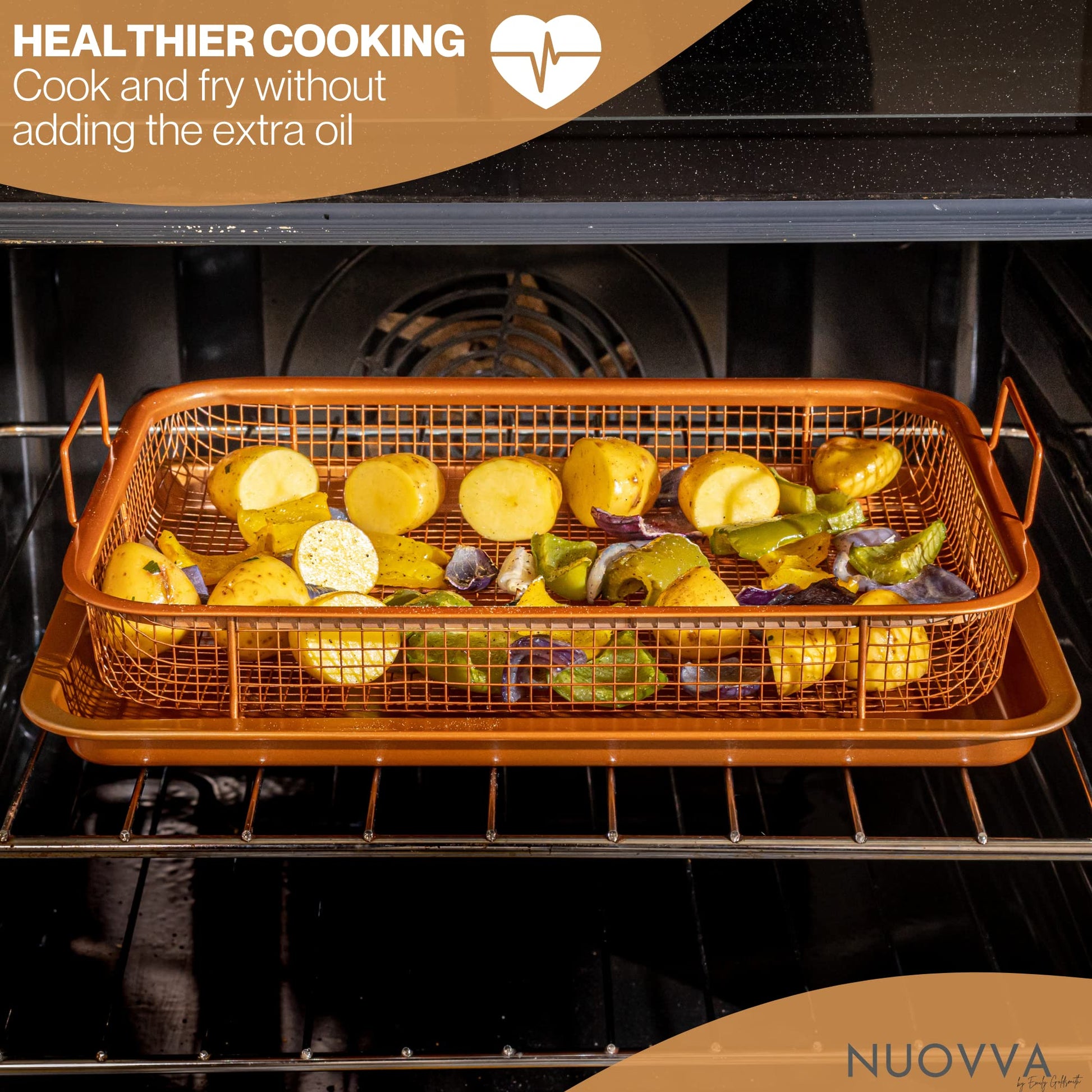 nuovva Copper Crisper Tray Non-Stick Oven Baking Tray with Elevated Mesh Crisping Grill Basket 2 Piece Set –