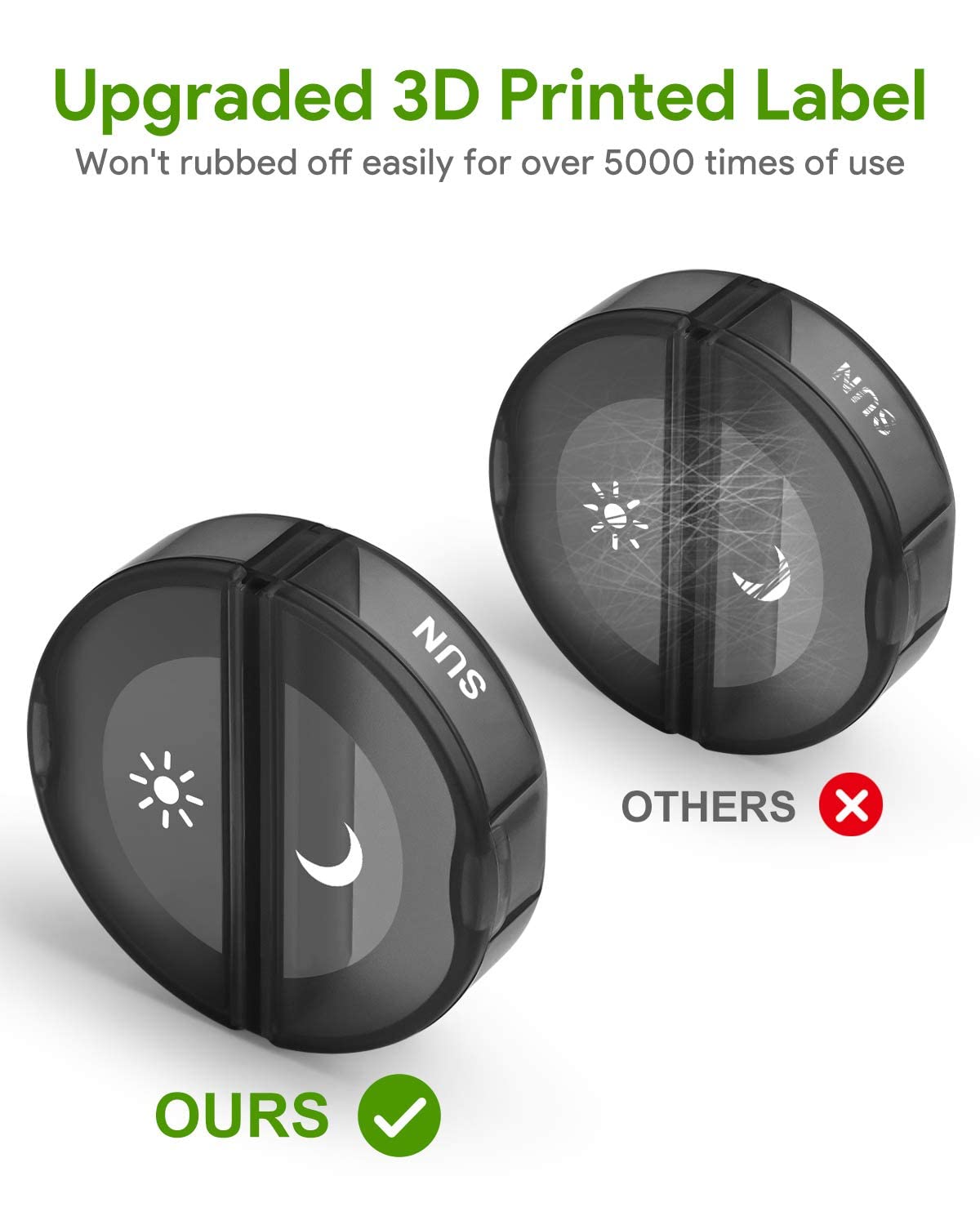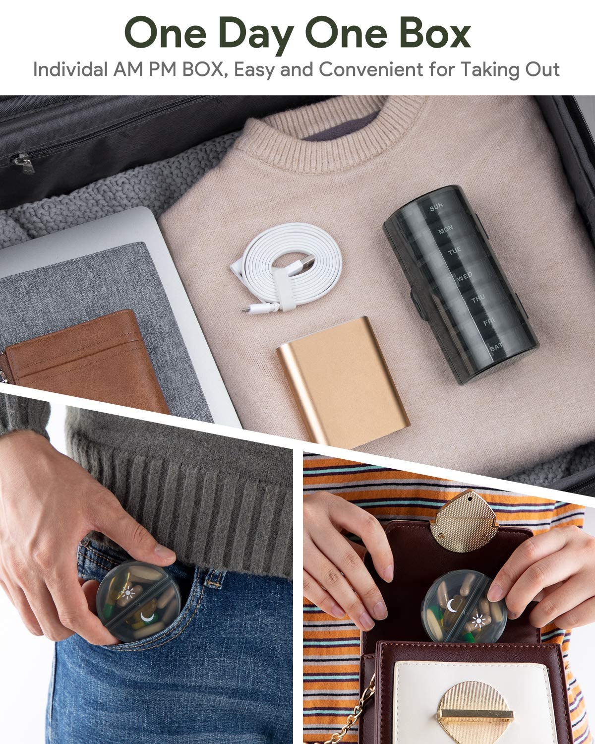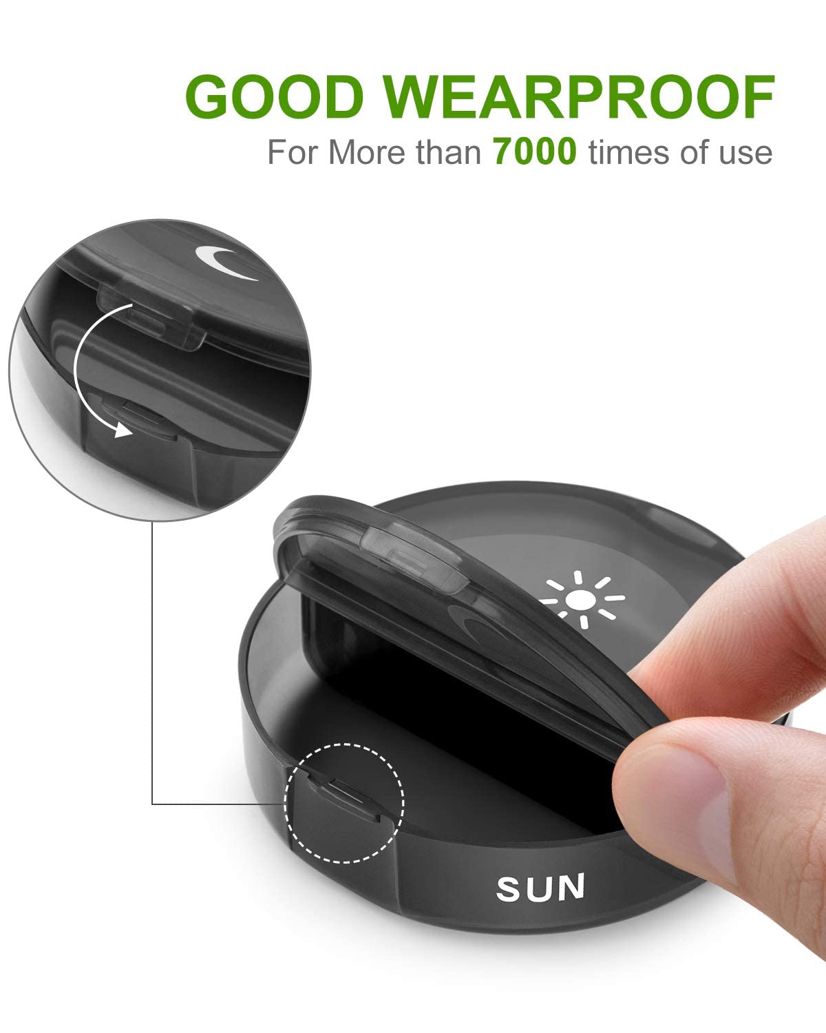 Pill Organizer 2 Times a Day, Weekly AM PM Pill Box, Large Capacity 7 Day Pill Cases for Pills/Vitamin/Fish Oil/Supplements (Black)