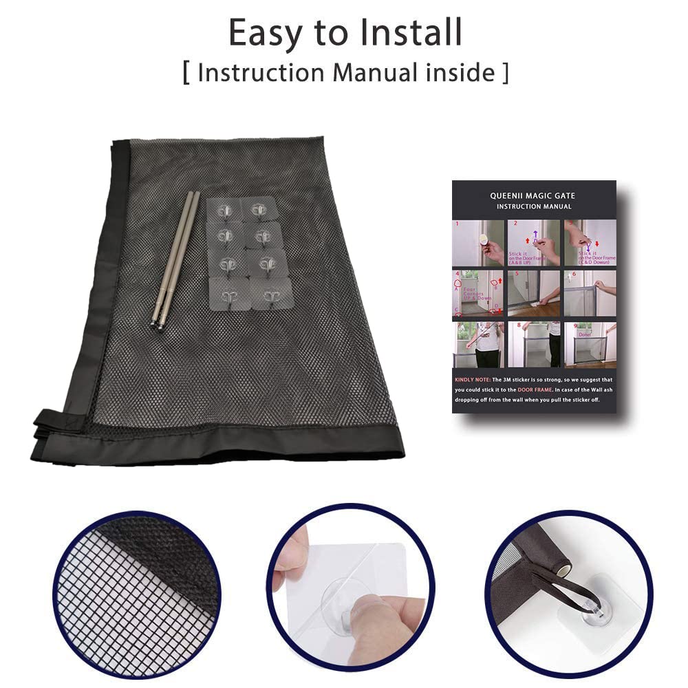• 【High Quality &Super Durable】 Magic Pet Gate is built with tough, partially see-through woven mesh fabric woven. Withstand abuse from small pets, which designed to endure hazardous outdoor conditions and pets claws.