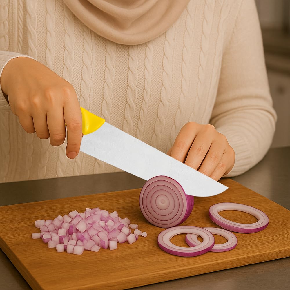 • Sharp stainless steel blade retains its edge longer, making it ideal for slicing, dicing, chopping, and a variety of everyday kitchen tasks.