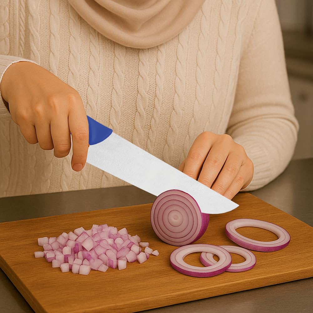 • Sharp stainless steel blade retains its edge longer, making it ideal for slicing, dicing, chopping, and a variety of everyday kitchen tasks.