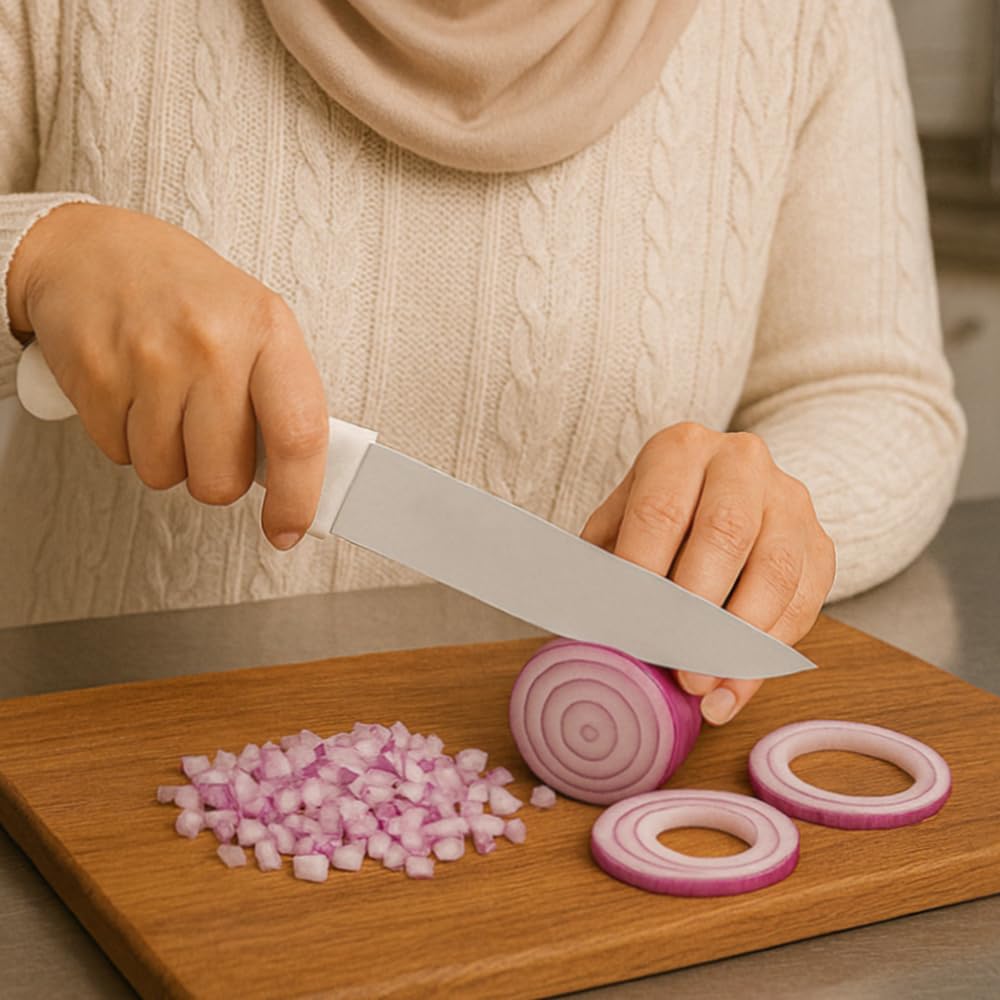 • Sharp stainless steel blade retains its edge longer, making it ideal for slicing, dicing, chopping, and a variety of everyday kitchen tasks.
