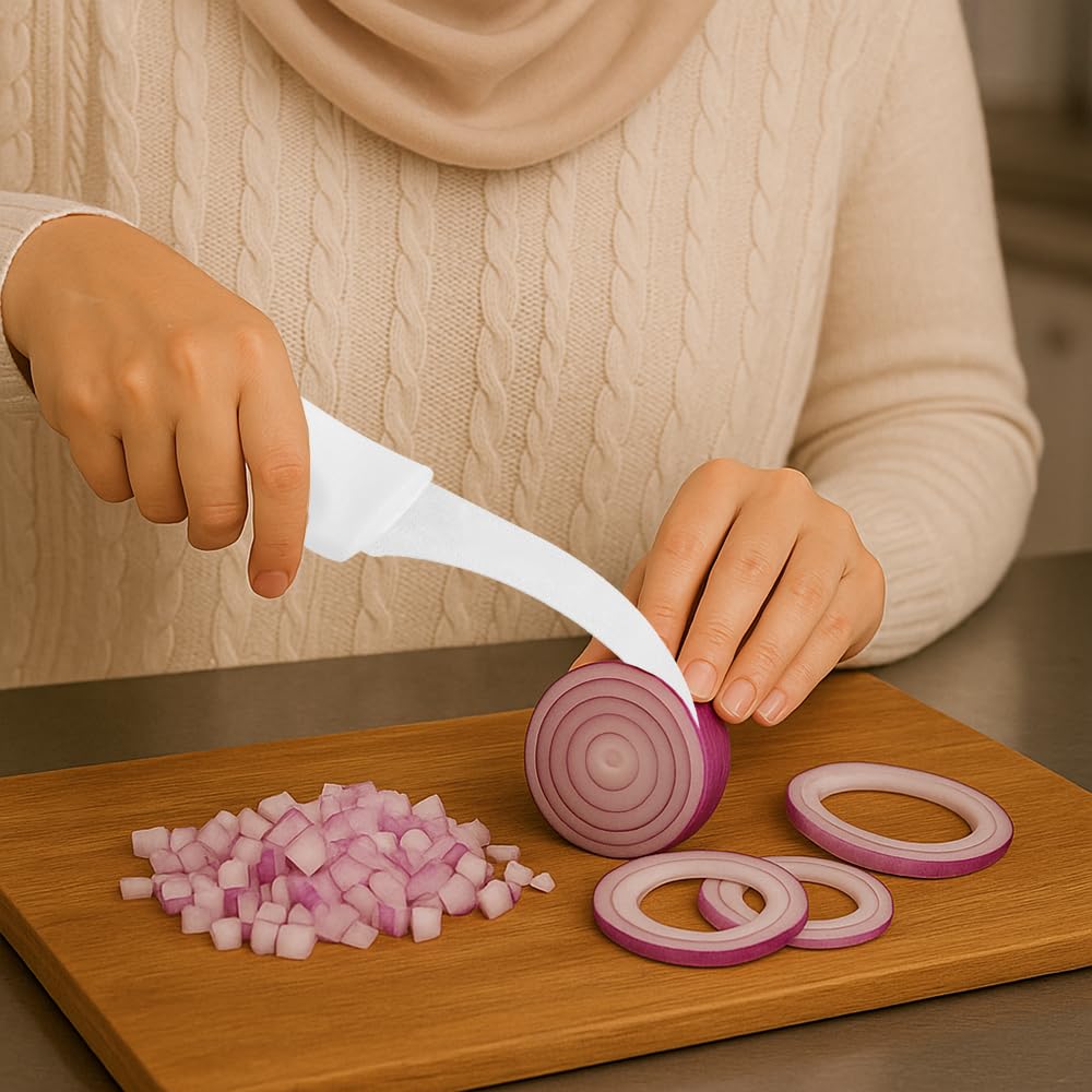 • Sharp stainless steel blade retains its edge longer, making it ideal for slicing, dicing, chopping, and a variety of everyday kitchen tasks.