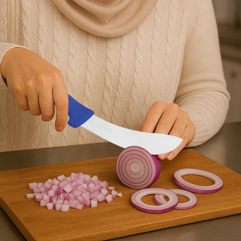 • Sharp stainless steel blade retains its edge longer, making it ideal for slicing, dicing, chopping, and a variety of everyday kitchen tasks.
