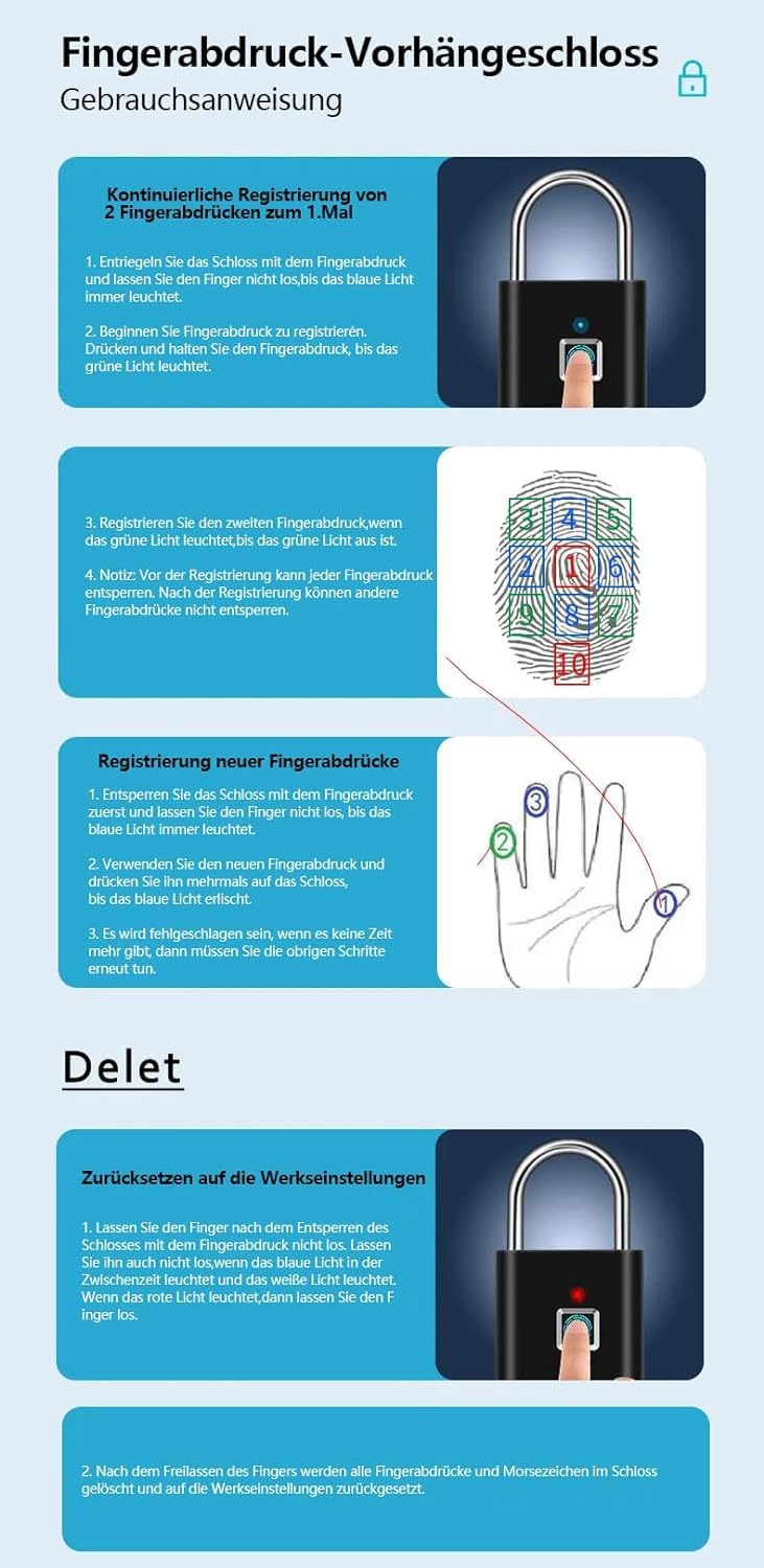 • Wide range of uses: the portable fingerprint lock is suitable for outdoor and indoor use, gym, gate, warehouse, cabinet, shed, box, bicycle, luggage, fence, garage.