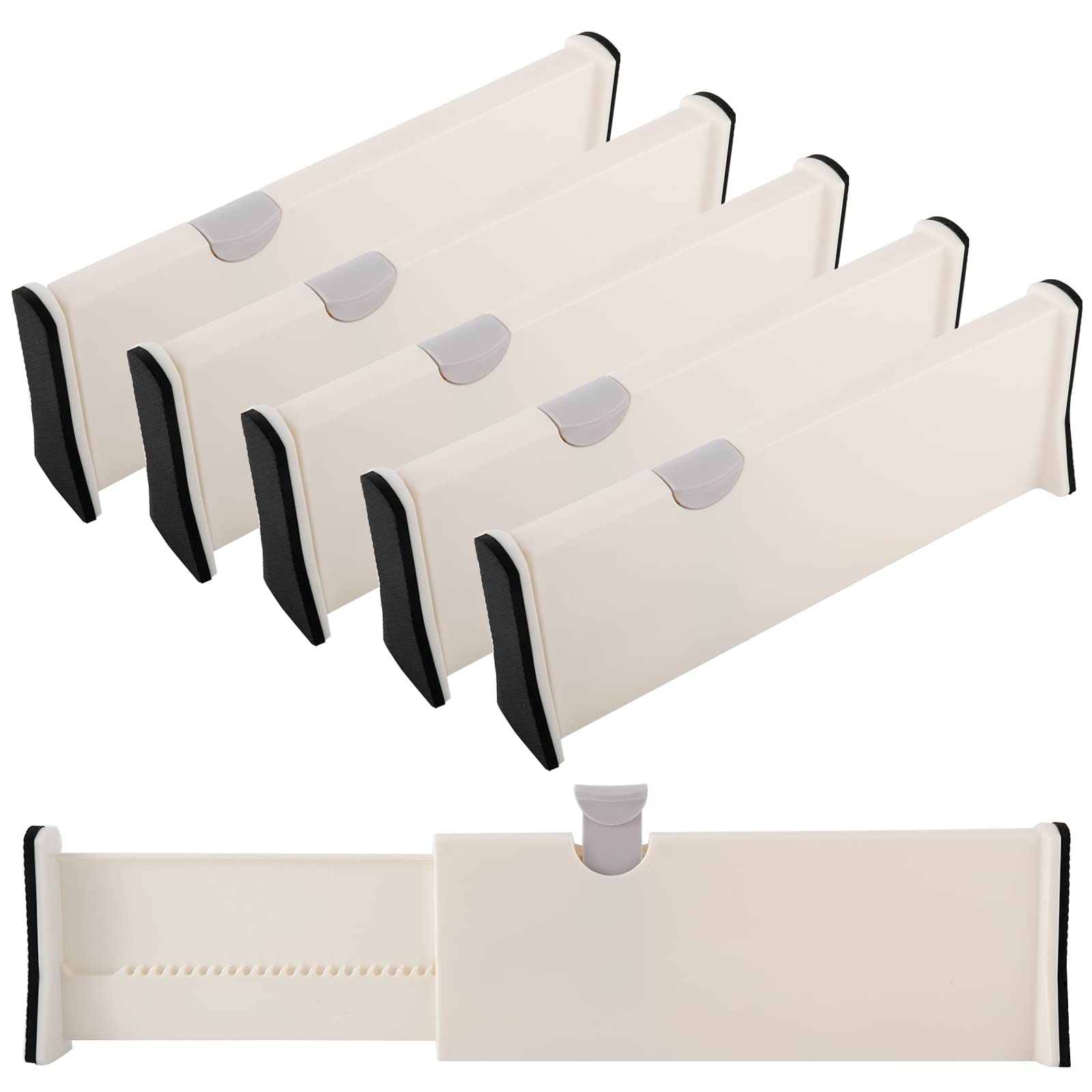 RealPlus 5pcs Adjustable Drawer Dividers Organizer Separators Expandable from 11-17", Plastic Dresser Organizer for Kitchen Bedroom Bathroom Office Desk Closet Clothing