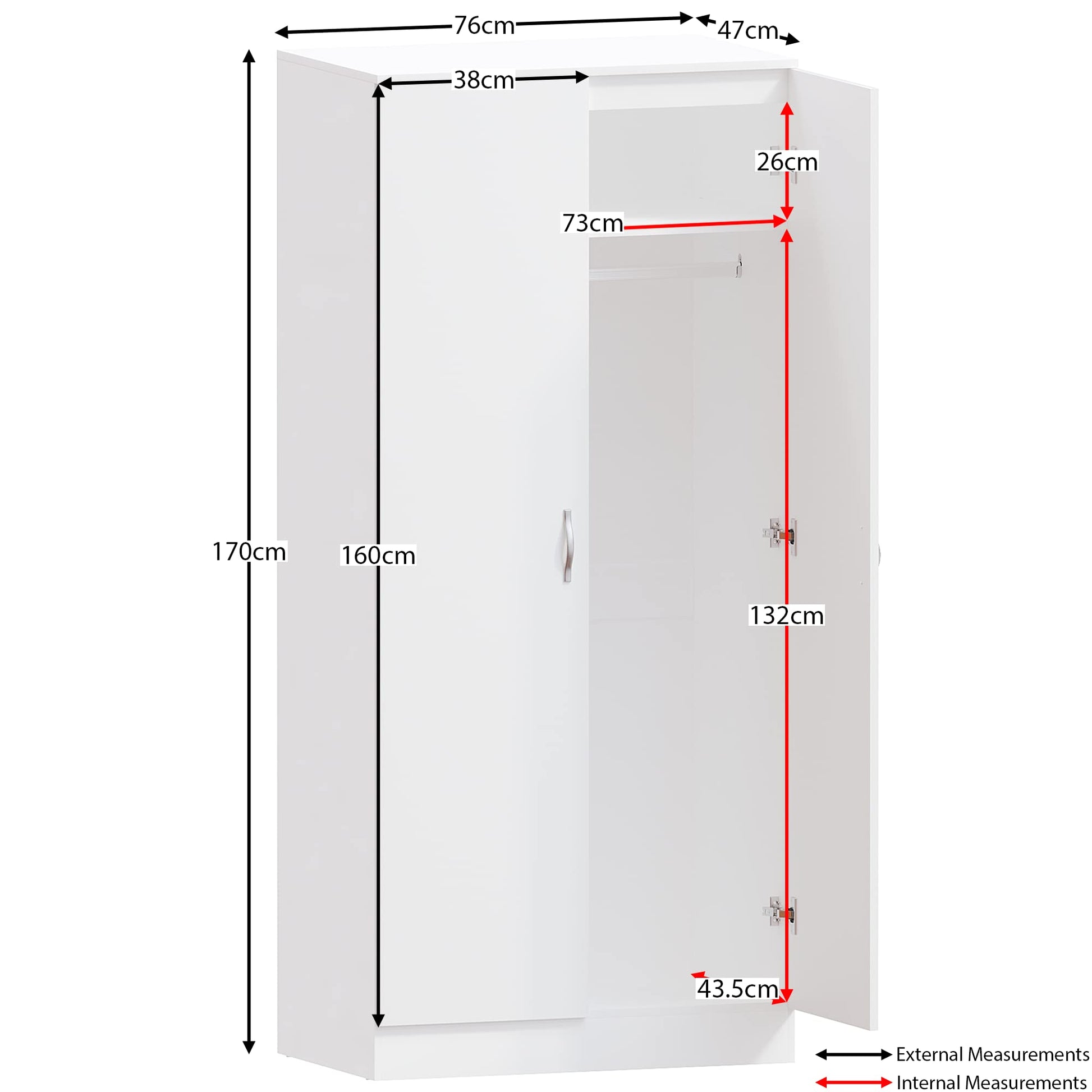 Riano 2-Door Wardrobe with Internal Shelf and Hanging Rail, Wooden MDF Bedroom Storage Furniture and Clothing Armoire in a Clean and Classic White Finish for Any Room