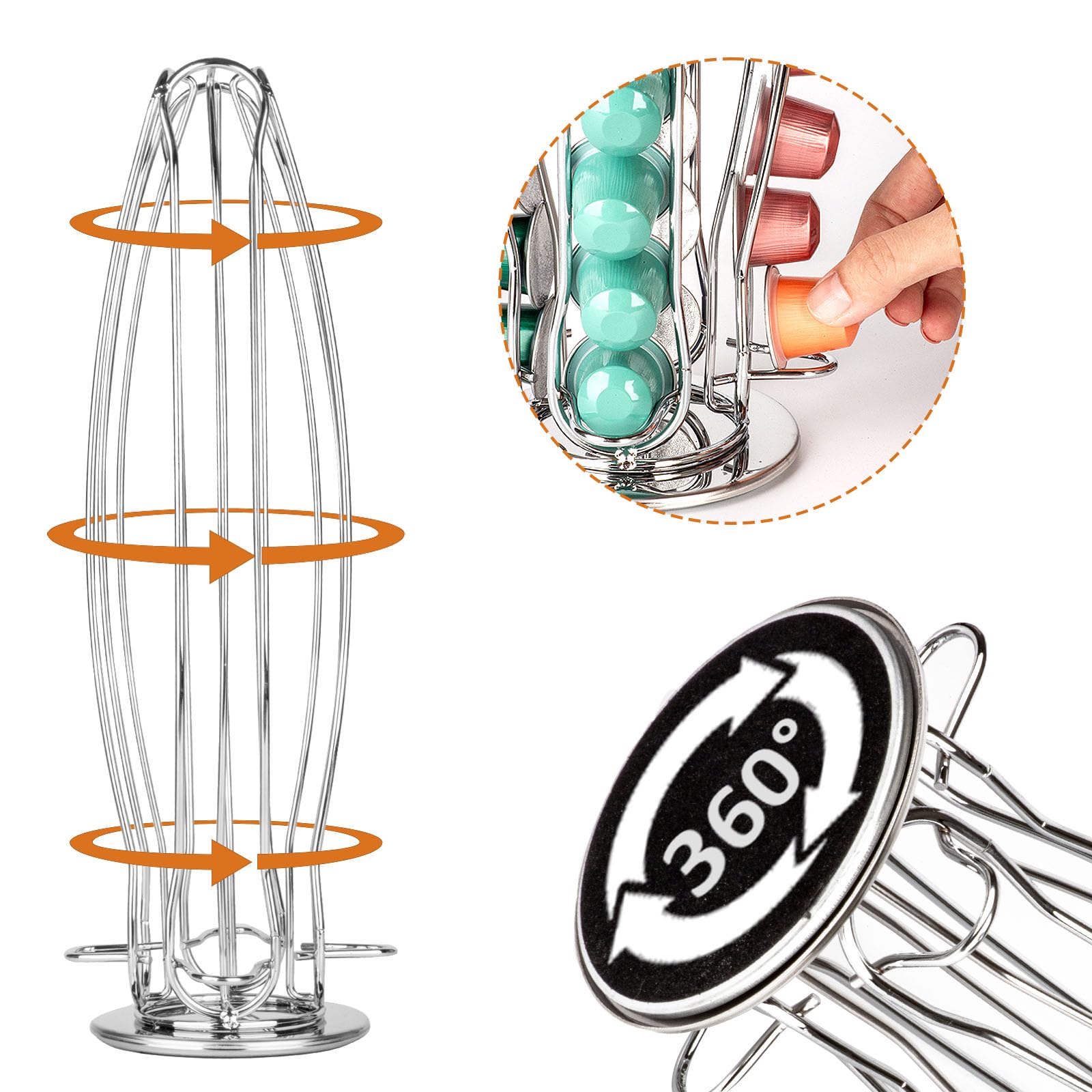 360° Rotating Design: Smooth spinning for effortless pod selection during your daily coffee routine