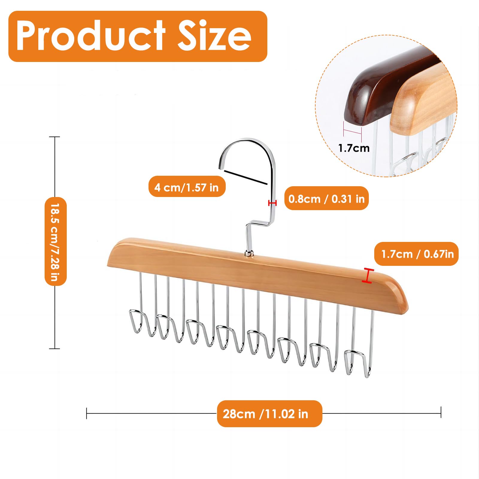 • 👚【360 Degrees Rotating Hooks】The top hook can rotate 360°, enabling you to easily turn it and provide extra convenience when hooking or picking up your clothing. These wooden belt hanger for closet also keep your closet tidy and organized since they are so easy to locate and place items.