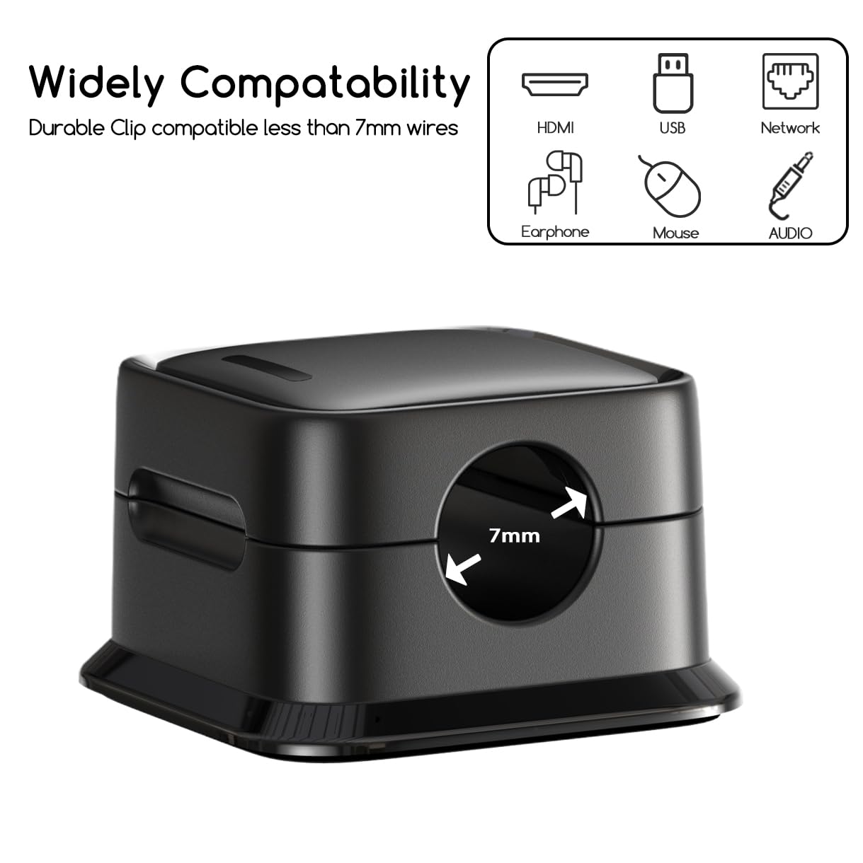 • 【WORK FOR ALL KINDS OF CABLE】 Suitable for holding most desktop cables less than 7 mm (0.27 inches). This desktop cable management can be used for iPhone charger cables, USB cables, network cables, kitchen appliance power cord and so on.
