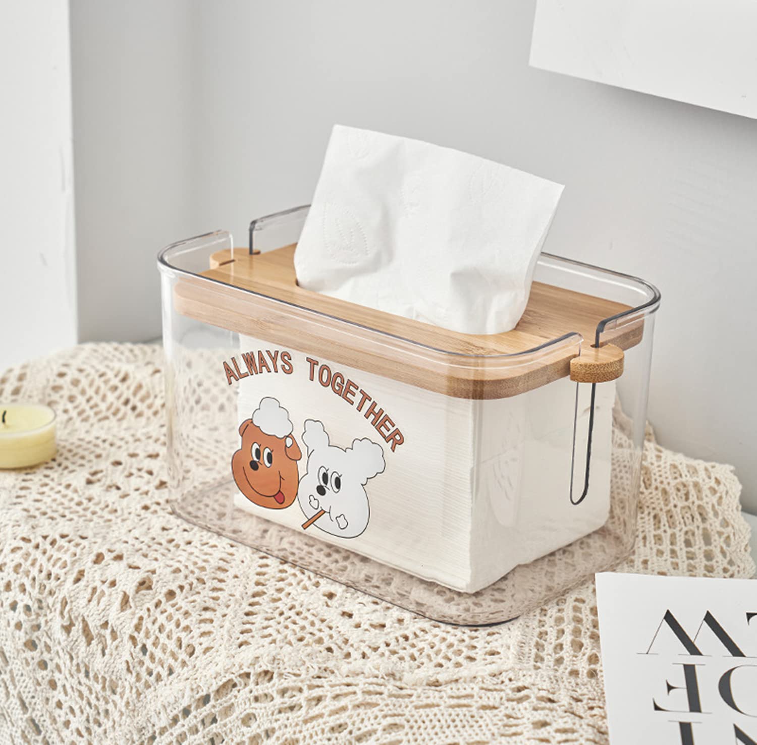 Square Tissue Holder, Facial Tissue Dispenser Box with Bamboo Cover, Rectangle Napkin Organizer Caddy for Car, Bathroom, Toilet, Kitchen, Bedroom