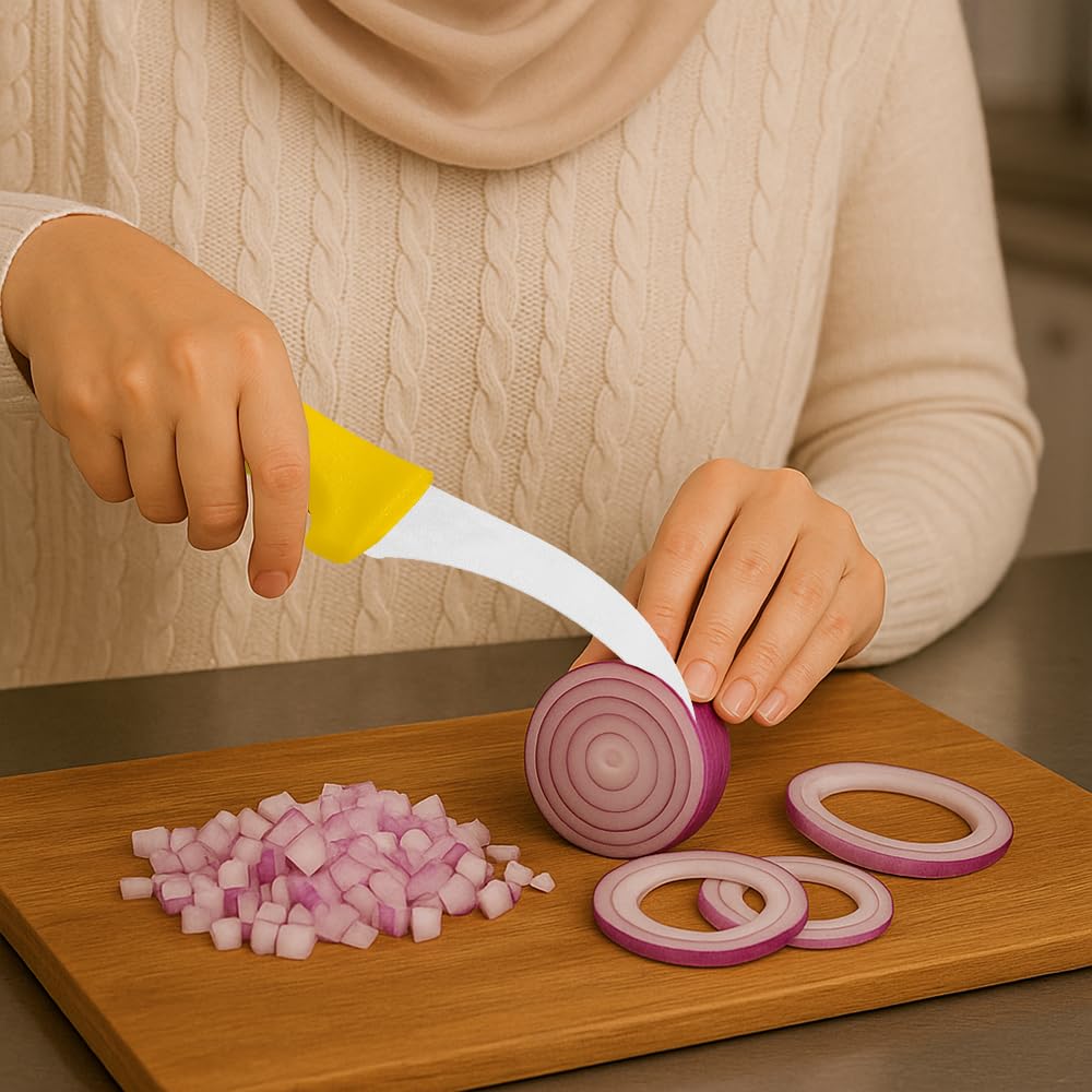 • Sharp stainless steel blade retains its edge longer, making it ideal for slicing, dicing, chopping, and a variety of everyday kitchen tasks.