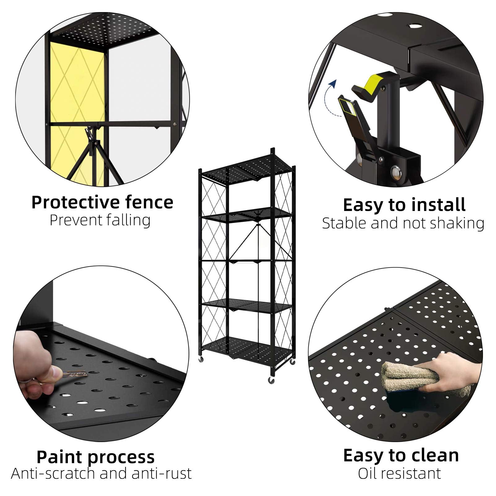 Storage Shelves, 5-Shelf Foldable Metal Shelving Units 28" W x 14" D x 65" H for Garage Kitchen Bakers Closet, Metal Wire, Collapsible Organizer Rack, Heavy Duty on Wheels (5 Shelf)