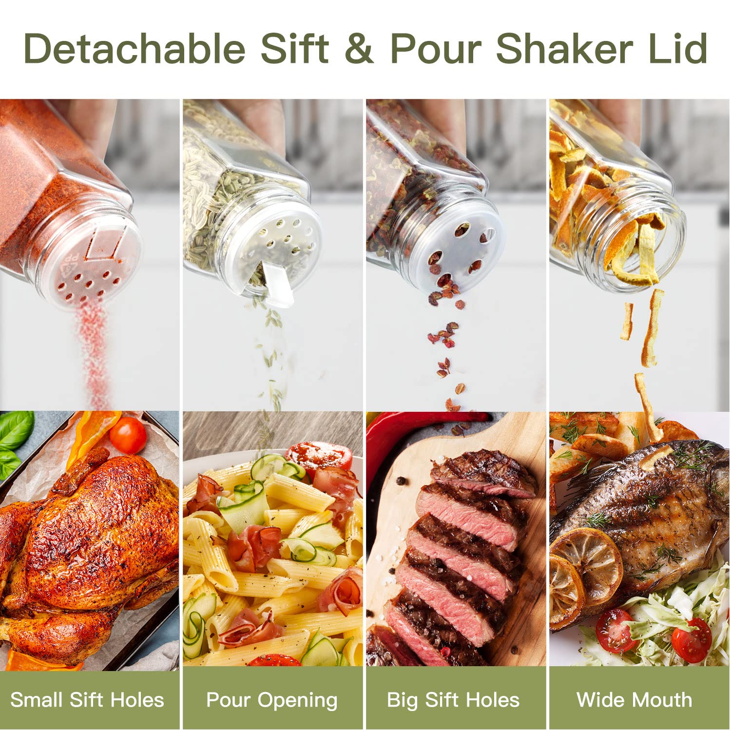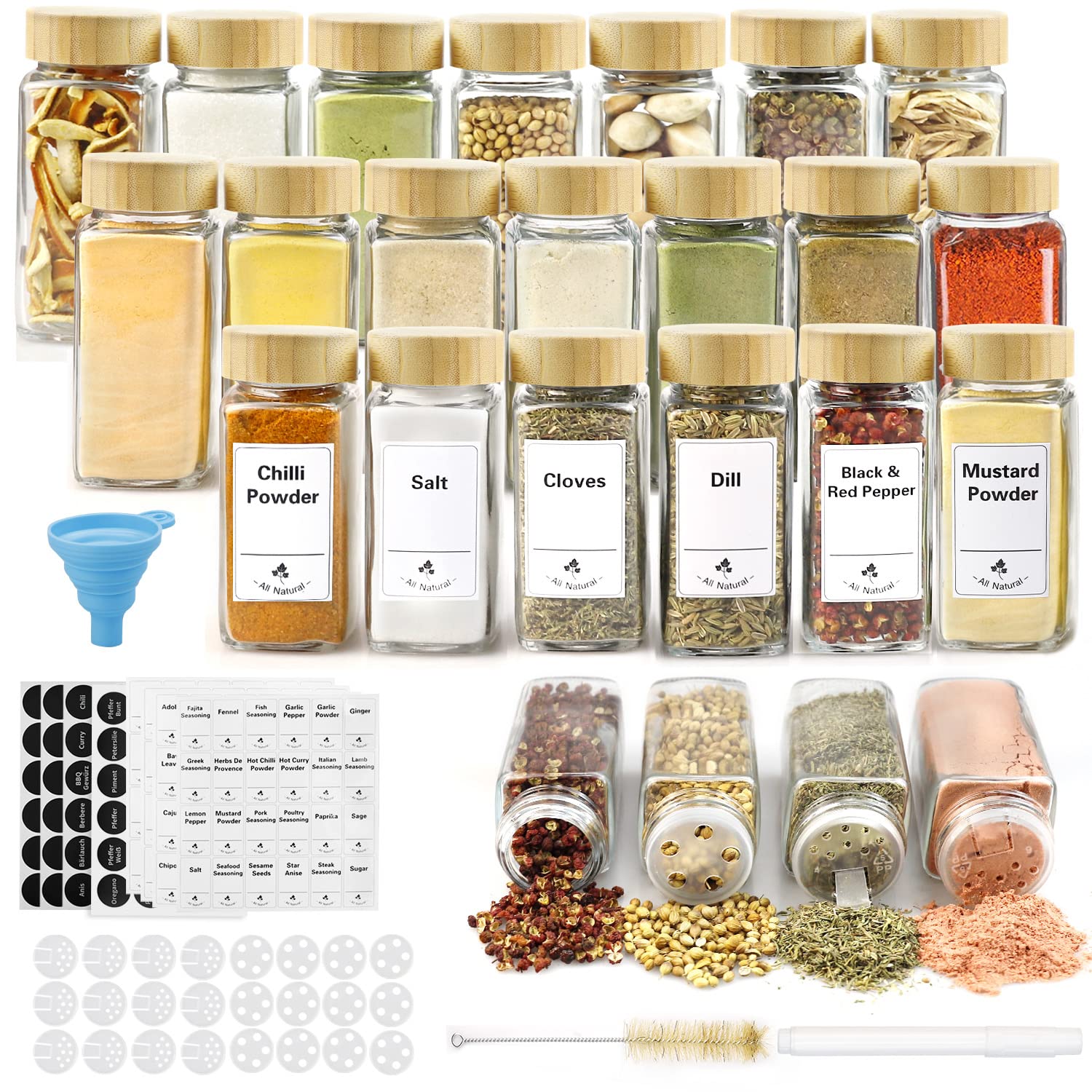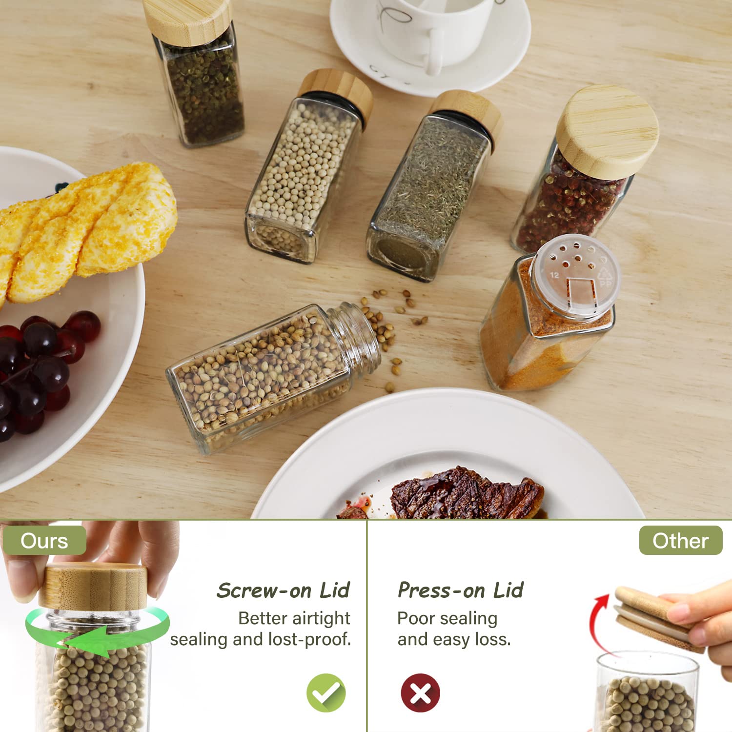 • Thickened durable glass: the spice shakers are made of food grade glass, free from harmful substances, waterproof and easy to clean. Spice jars bamboo lids are airtight sealed and stable and the aroma cannot escape.