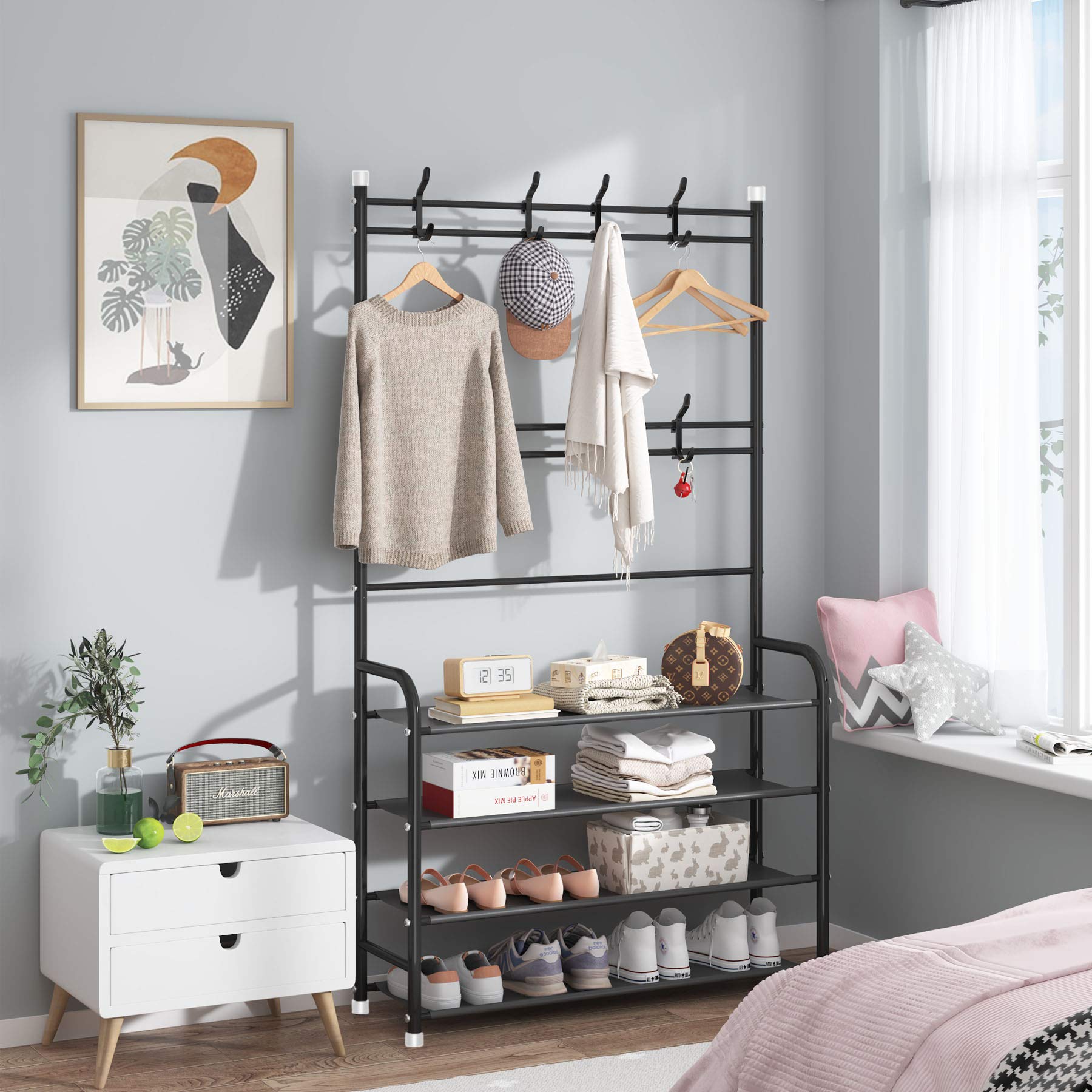 • 【Beautiful and practical】 The stylish color and structure design can be placed anywhere, not only at the entrance, for shoes, bags, scarves, keys, umbrellas, etc, but also for storing clothes in the room.