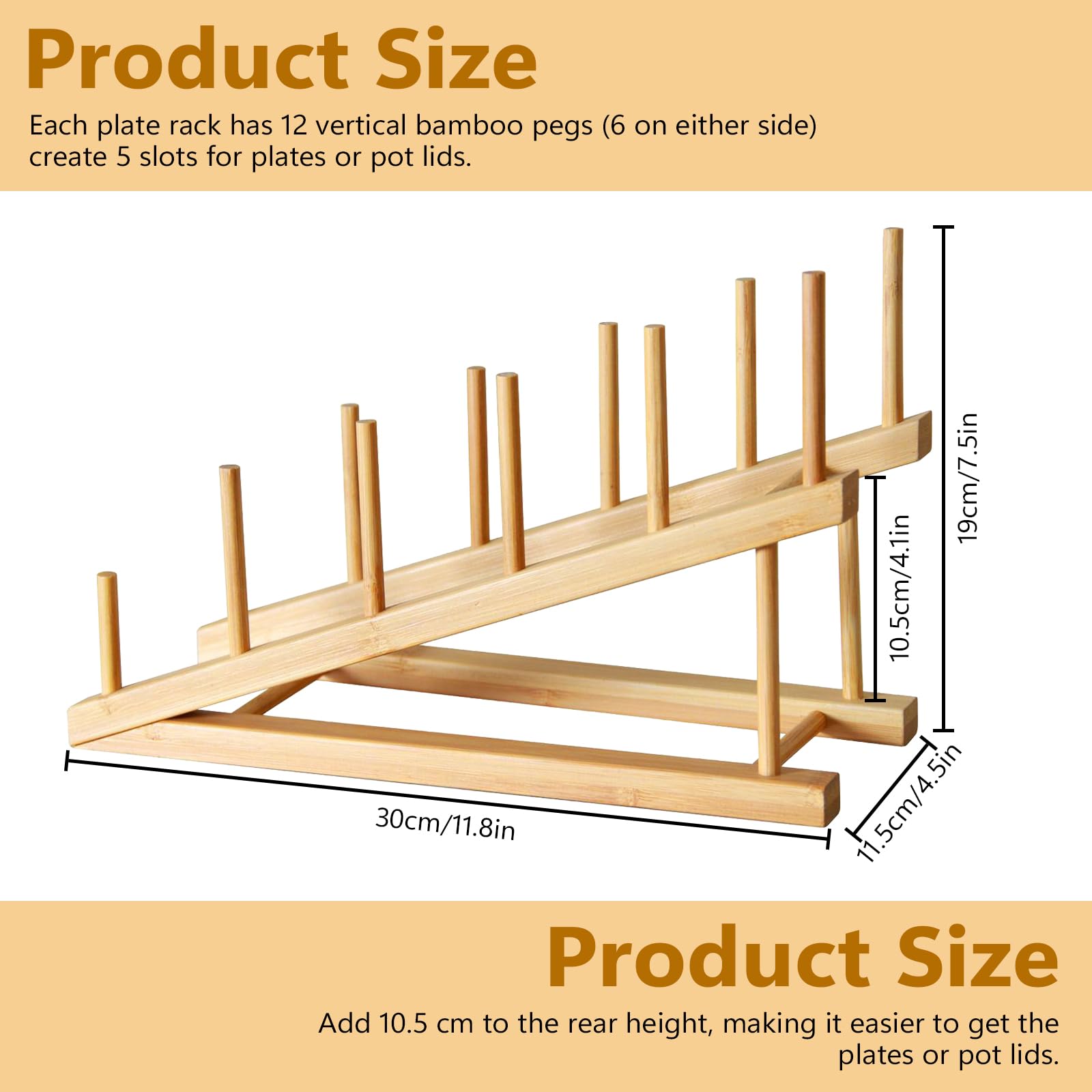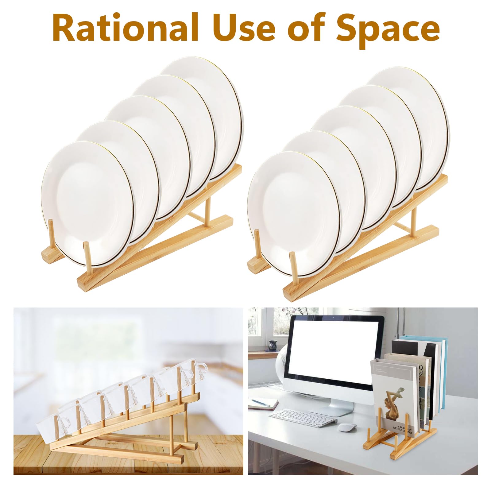 • Bamboo Plate Rack Set - Our kitchen cabinet storage set includes 2 bamboo dish drying drainer racks that hold a total of 10 kitchen essentials. Lightweight and good size, which is perfect for tight kitchen spaces