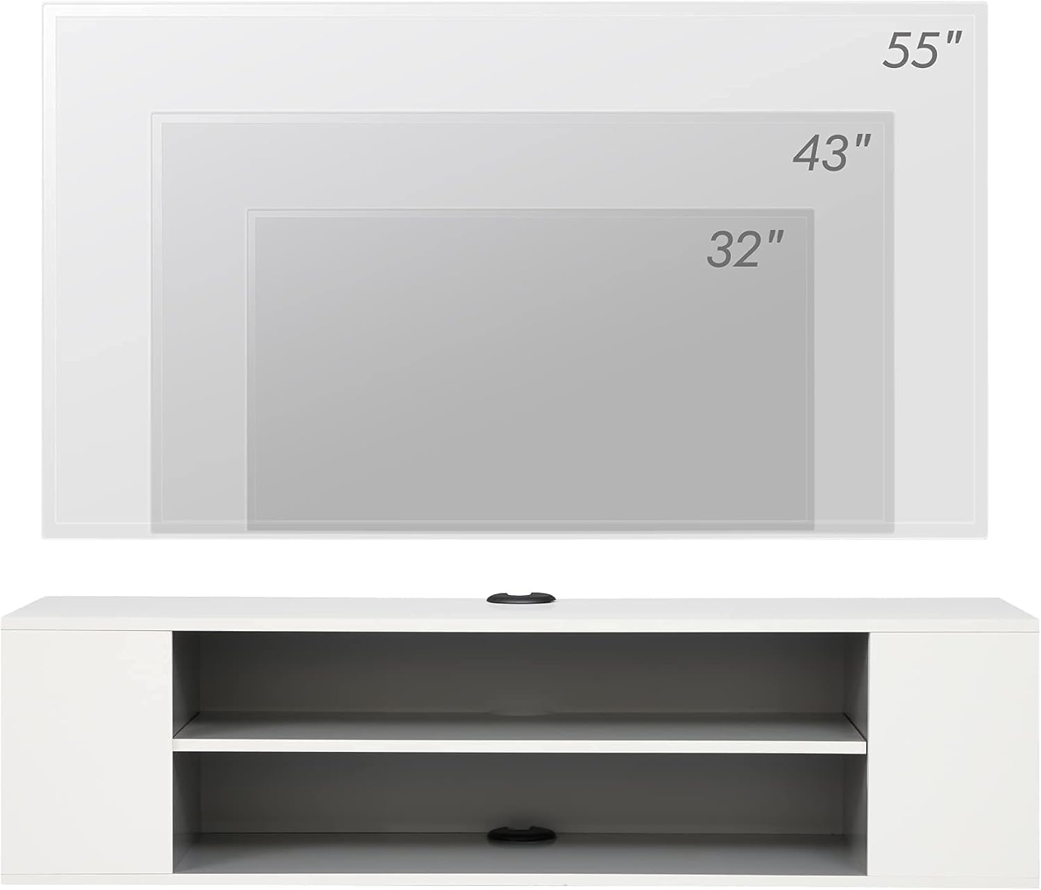 Create a sleek, modern entertainment center with the Wall-Mounted TV Shelf. This floating unit mounts directly under your screen, providing a clean, space-saving storage rack for your media devices, remotes, and consoles. Its crisp white wooden finish adds a contemporary touch to any living room. Ideal for minimalist setups, this media console shelf eliminates the need for bulky furniture, giving your space an open, airy, and organized feel while keeping essentials handy.