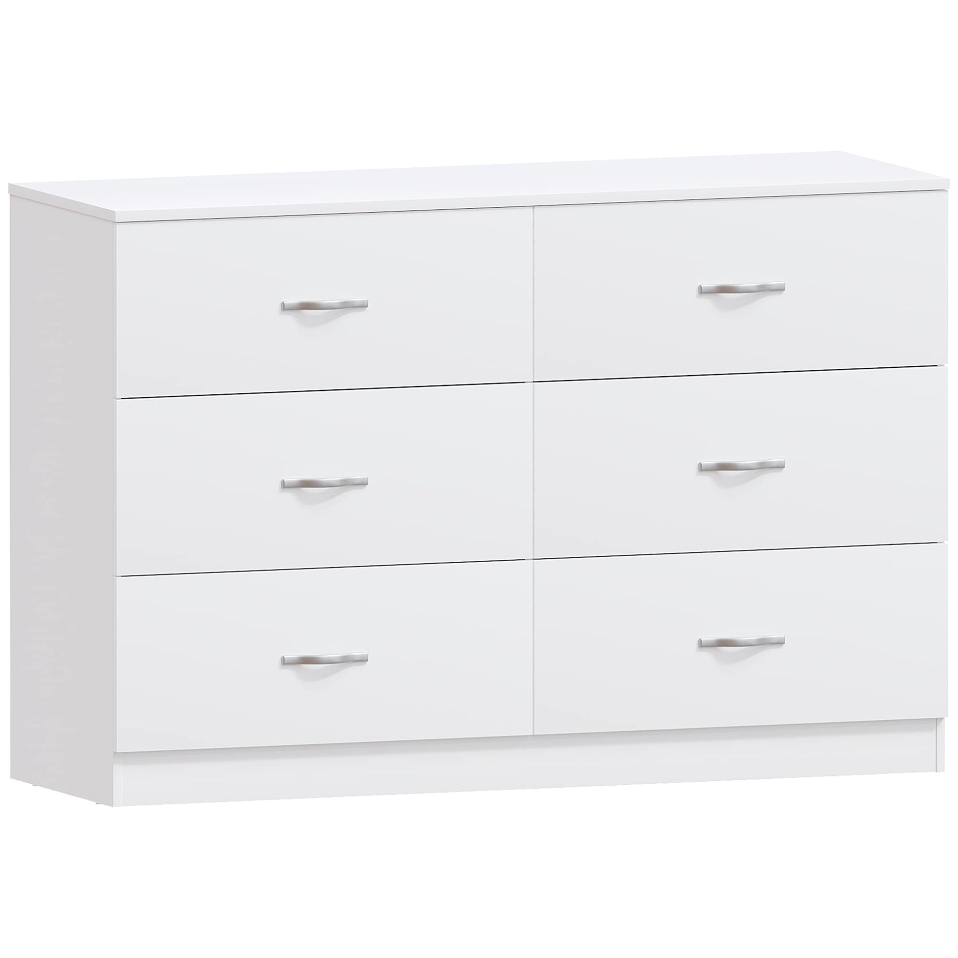 Wide Chest of 6 Drawers, Durable Manufactured Wood Bedroom Storage Unit with Smooth Sliding Drawers and Ample Space, Elegant Furniture in a Clean White Finish for Any Room