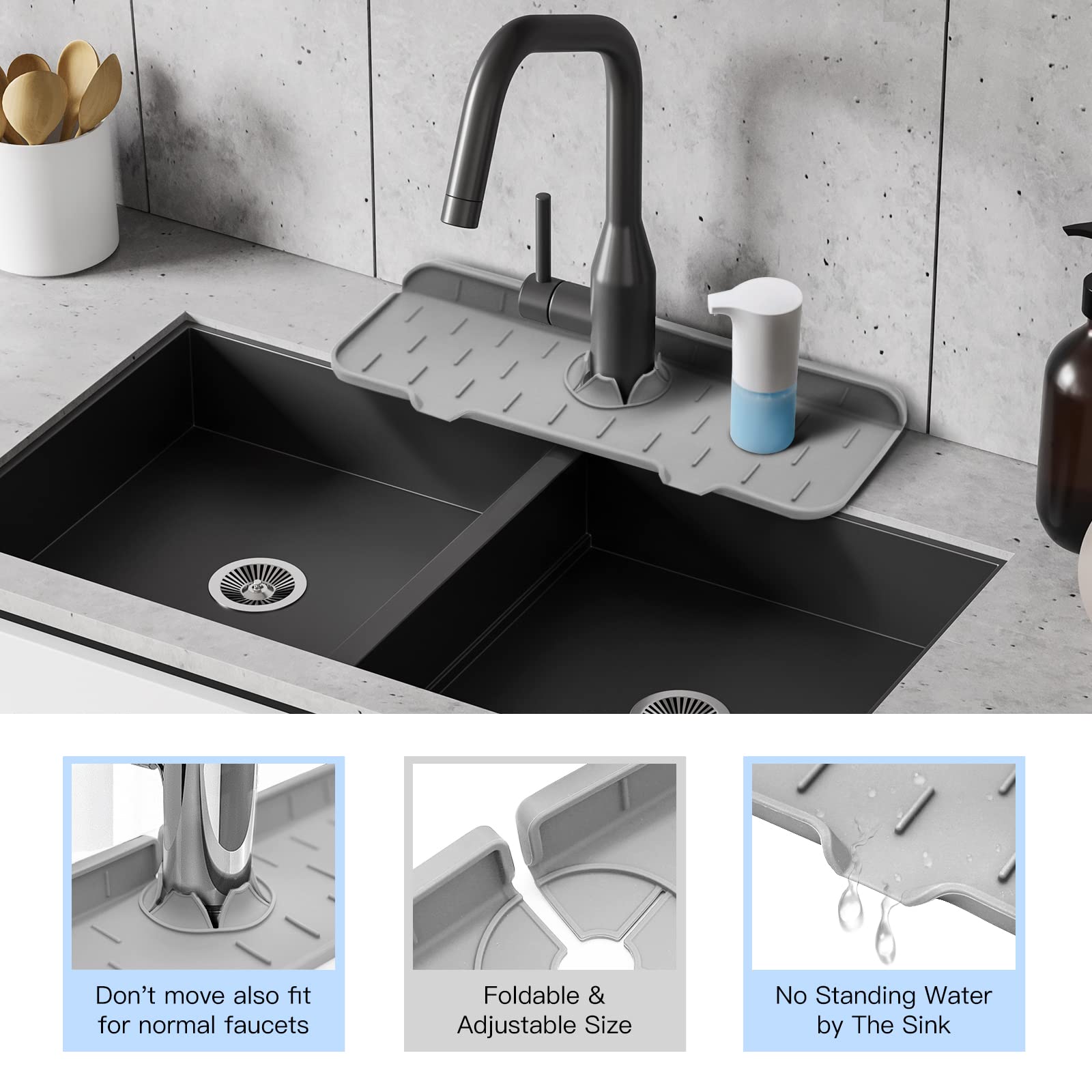 • More Using Occassions - The easy clean reusable silicone sink mat suit for most family faucets, include sink faucet, bar faucet, can also be used as a normal dish rack, kitchen or bathroom organizer, etc.
