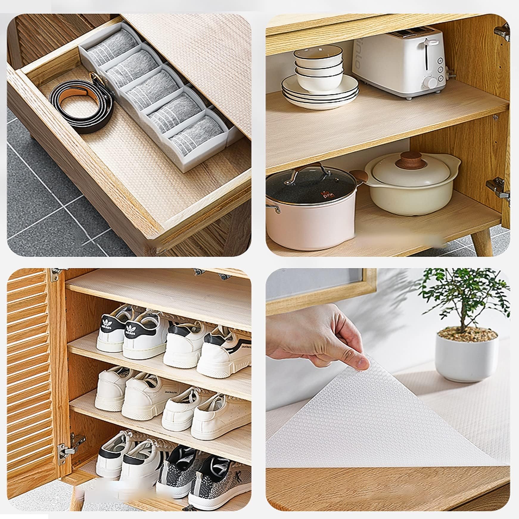 wolpin Anti-Slip Kitchen Cabinet Drawer Shelf Mat Liner Sheets (45 cm x 3 m Roll) Waterproof Strong Table Mat for Bathroom, Fridge, Textured Multipurpose (Transparent, White), Ethylene Vinyl Acetate