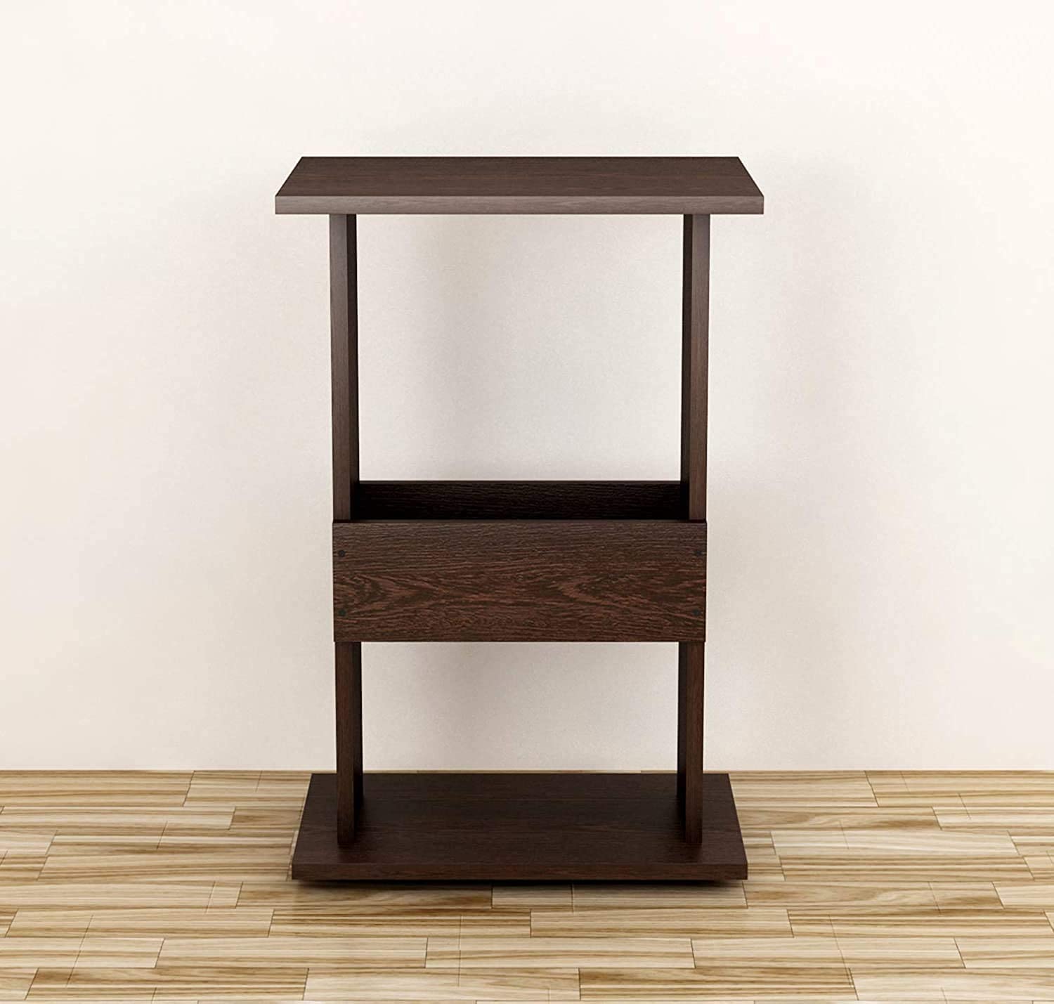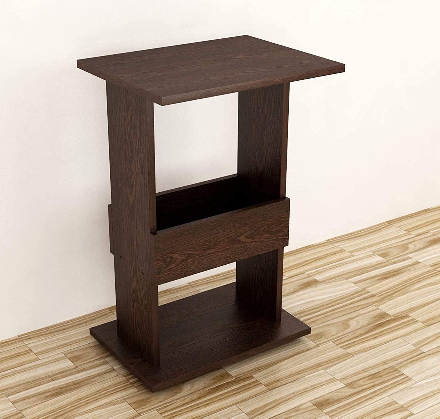 Wooden Bedside Sofa Side end Table with Bookshelf Magazine Rack (Brown)