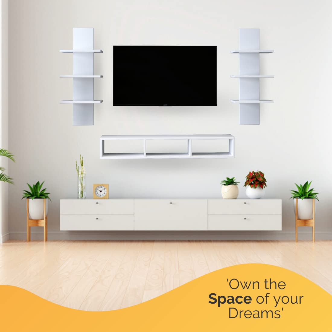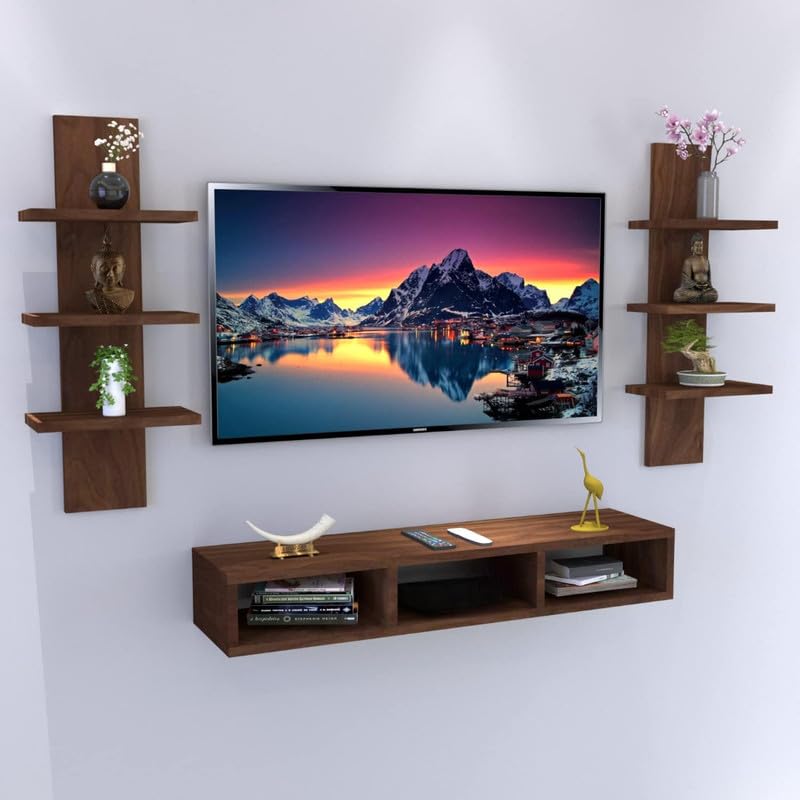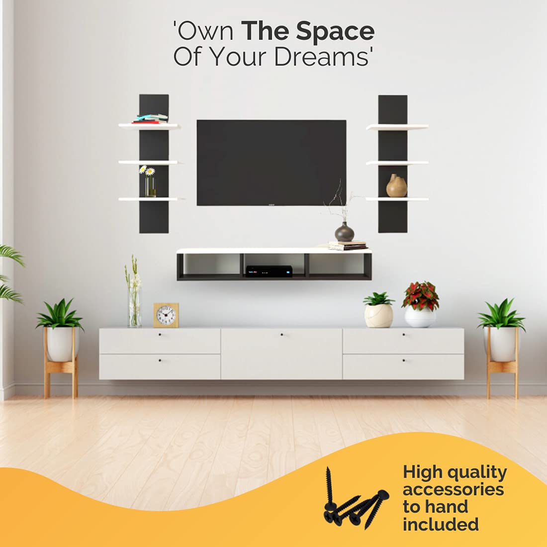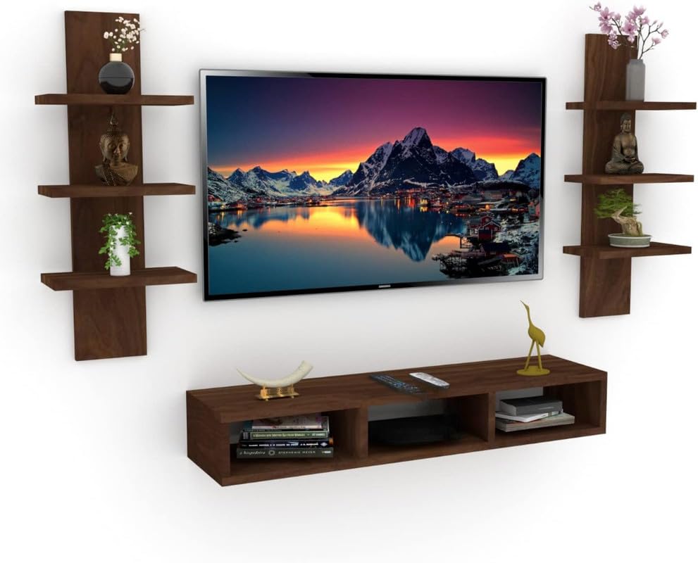- Complete three-piece wall-mounted entertainment set that creates a cohesive and elevated media wall.