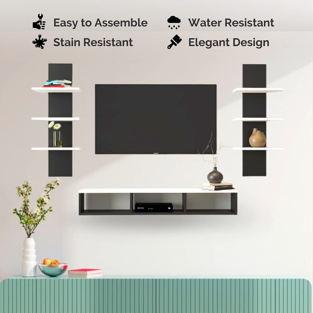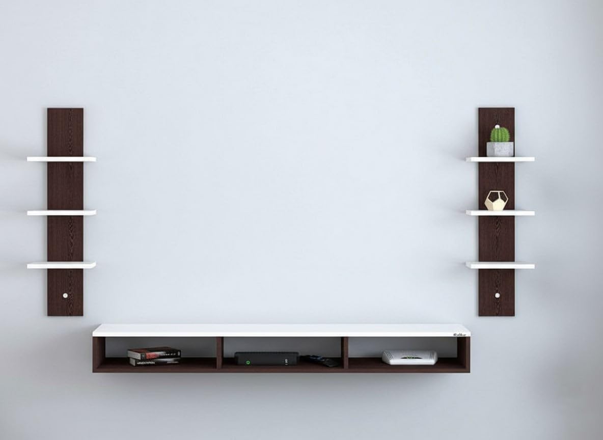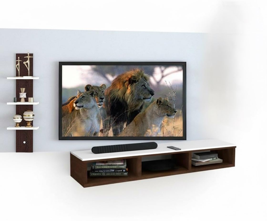 - Complete three-piece wall-mounted entertainment set that creates a cohesive and elevated media wall.