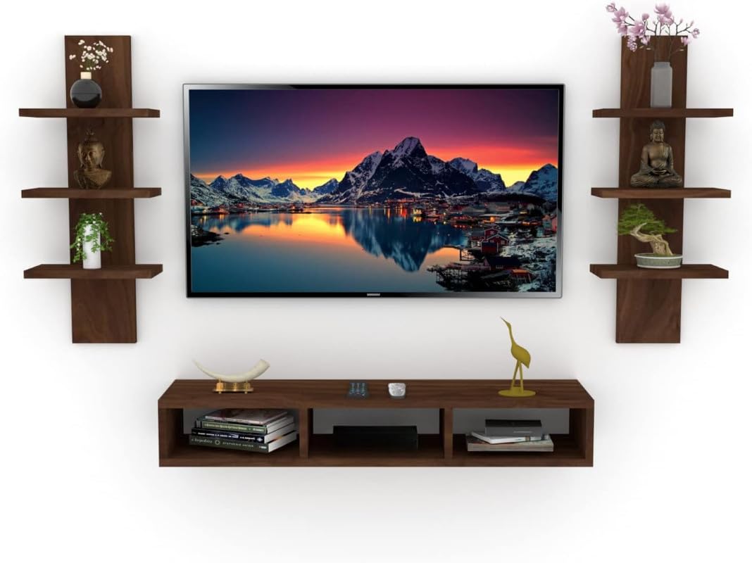 - Includes multiple surfaces for displaying décor, speakers, or media components.