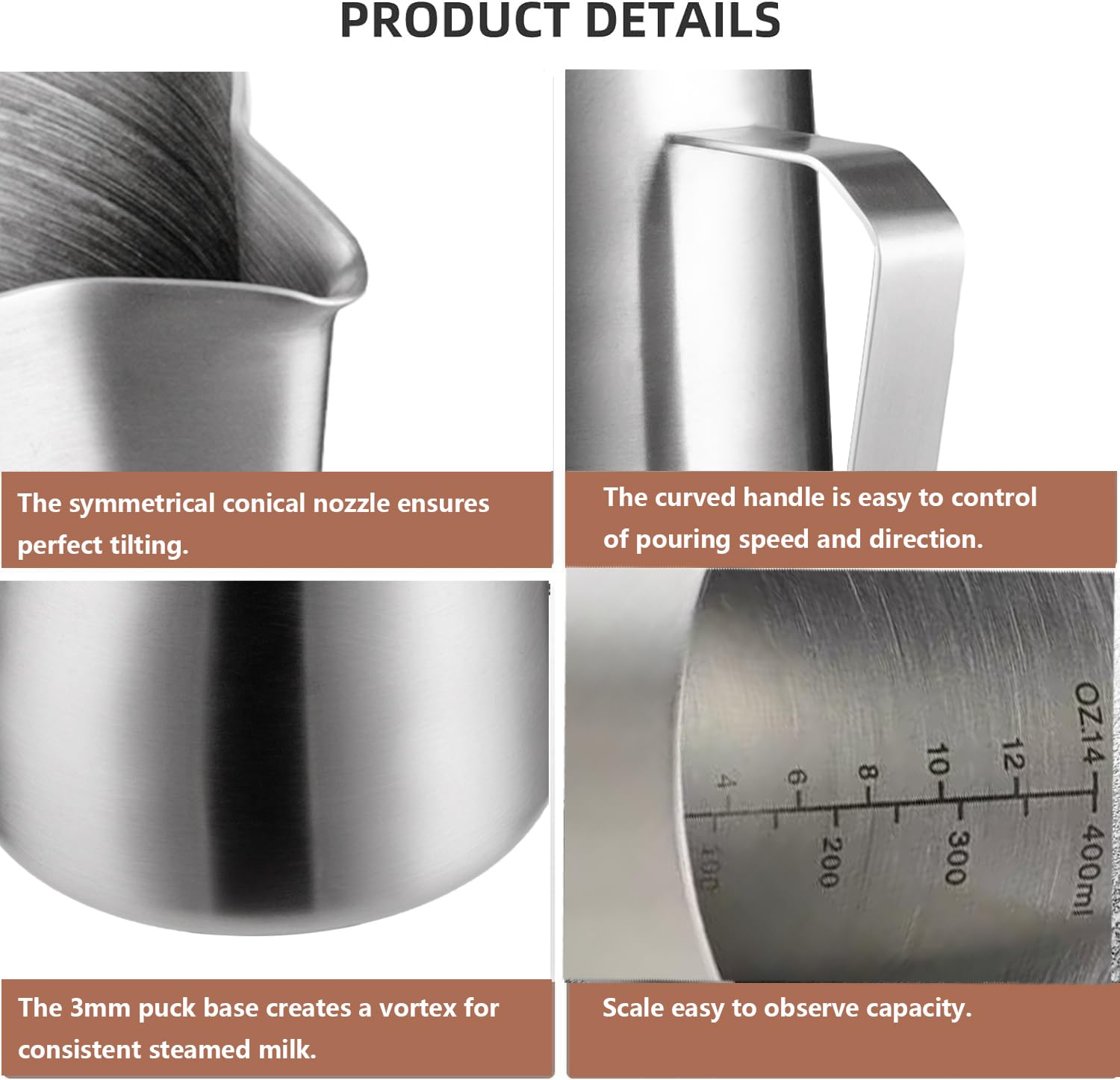 Worbic Milk Frothing Pitcher 12oz/350ml, Stainless Steel Milk Jug for Making Latte Art and Coffee Cappuccino,Latte Art Barista Steaming Pitcher Milk Frother Jug with Scale