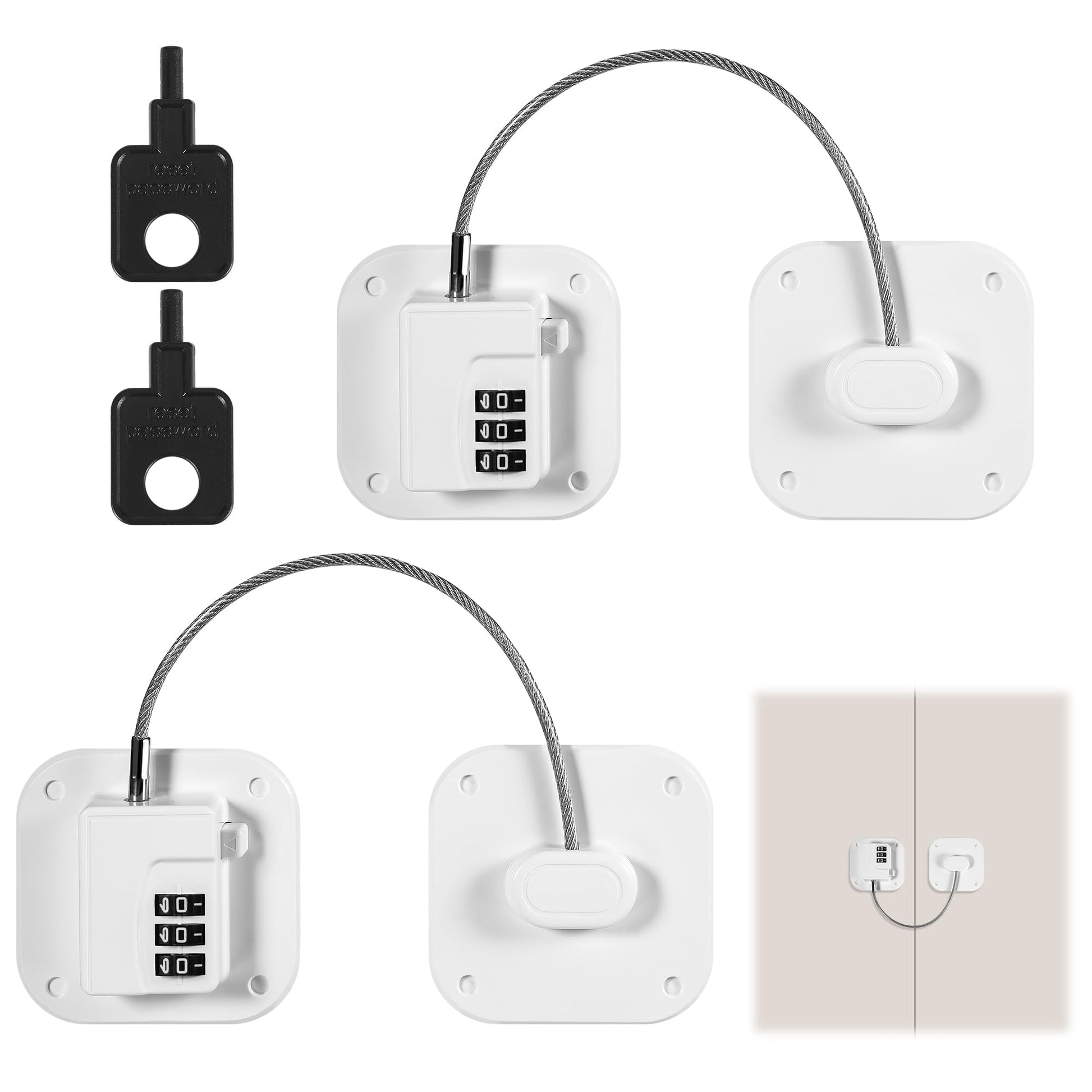• 【High Quality Materials】Fridge locks for children is made of zinc alloy material and the 304 stainless steel lock core are more safer for our family. The twisted steel wire rope has strong tensile strength and will not break. the fridge door lock features self-adhesive design, which can last for long time, also easy to peel off without leaving any residue.