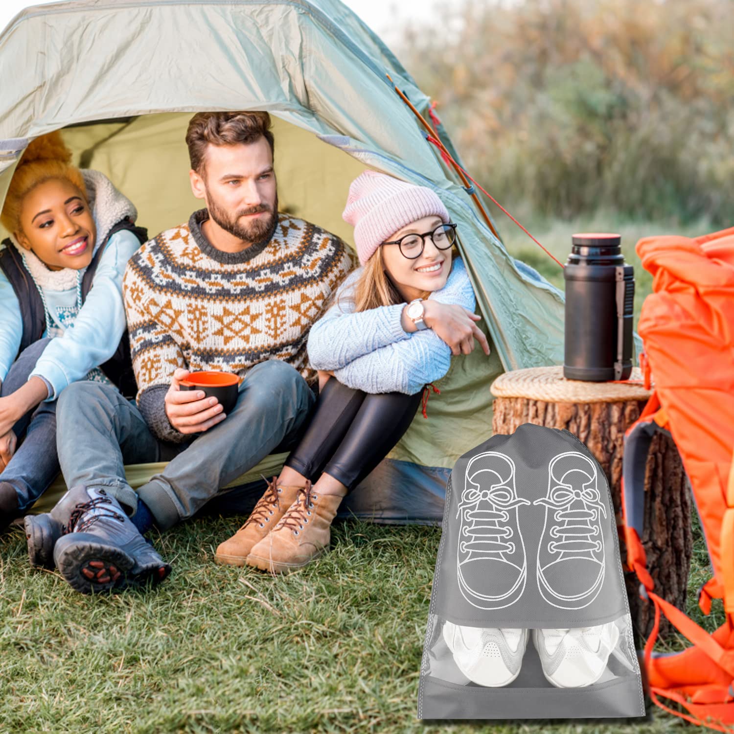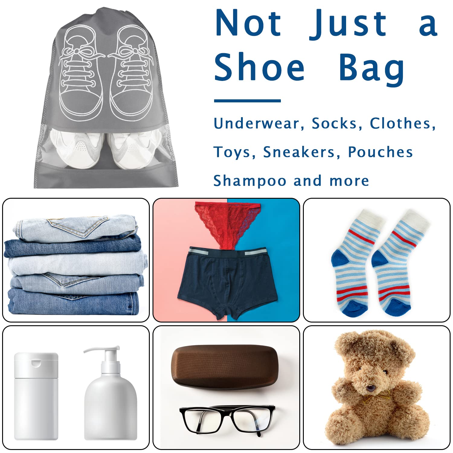 Ynaize 10PCS Travel Shoe Bags with Rope Large Shoes Storage Organizers Pouch for Men and Women Clear Drawstring Bags, Grey, Stylish Pattern