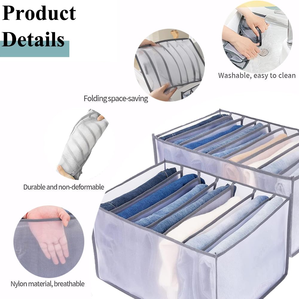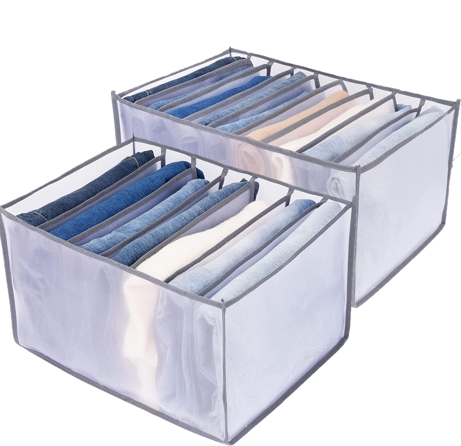 Yoawllty Wardrobe Clothes Organizer, Foldable Drawer Organizer with Dividers for Clothing and Jeans - 2 Pack, Grey