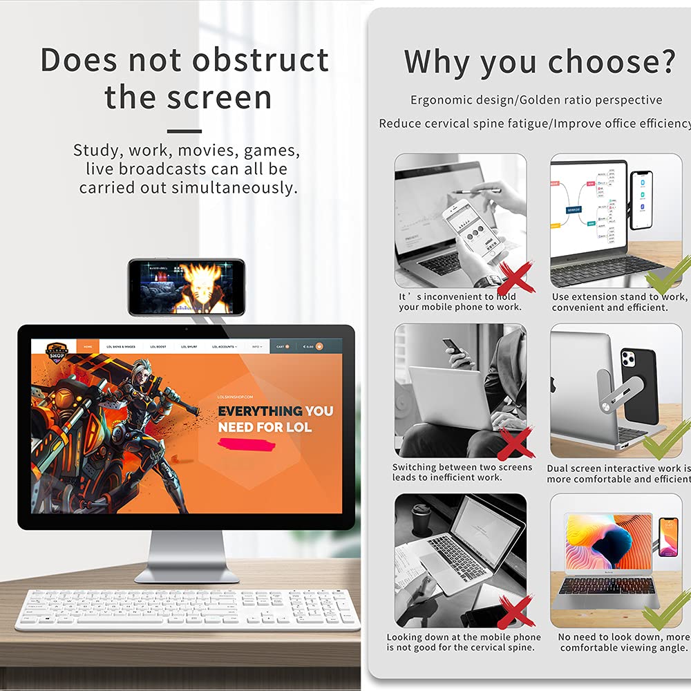 YONJILA Side Mount Clip on Laptop for Phone, Aluminum Alloy Computer Expansion Bracket with Rotatable Angle Adjustment, Foldable, Phone Holder Stand for Laptop Same Screen for All Smart Phones