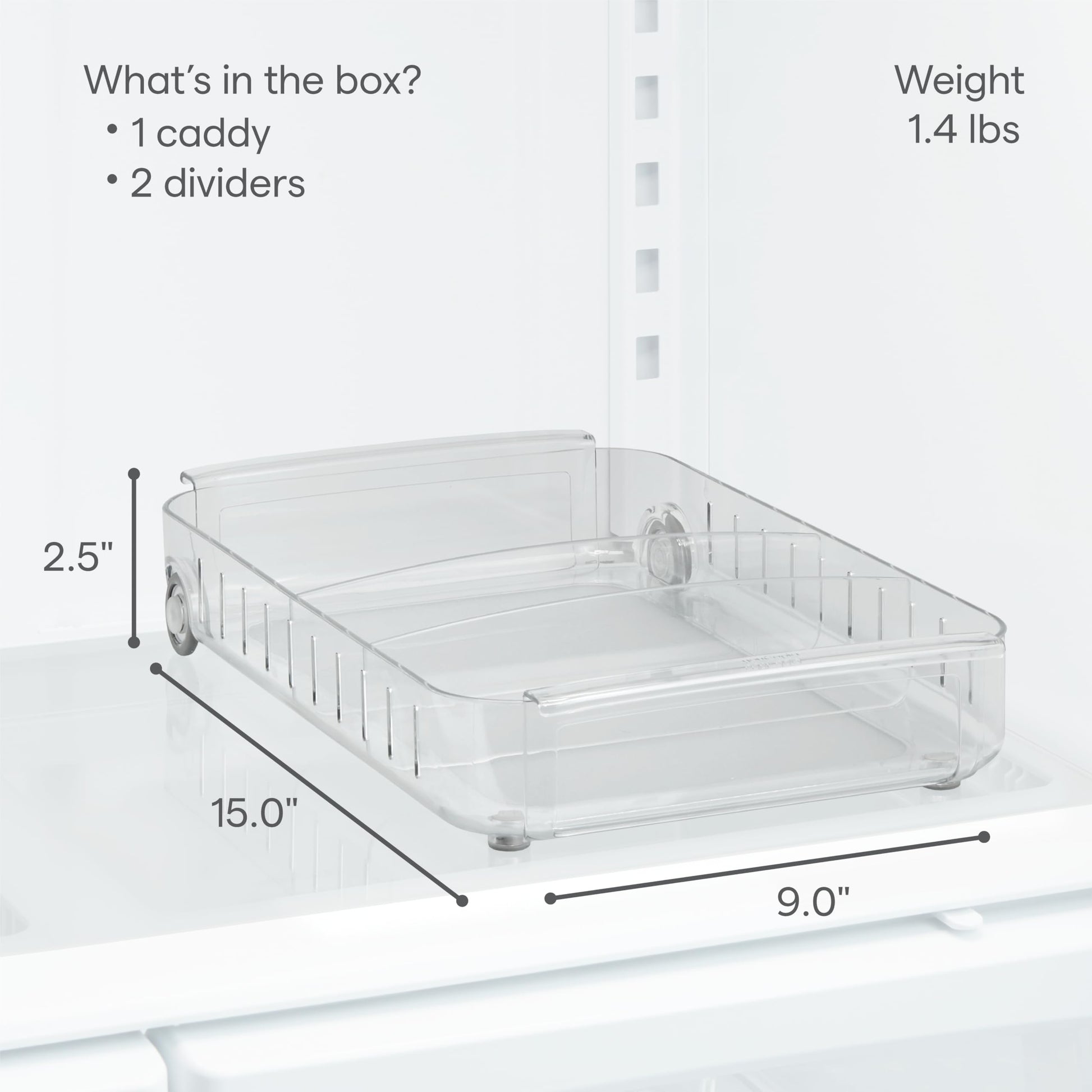 • WHEELS: Soft-spinning wheels roll items from the back of the fridge for an easy find