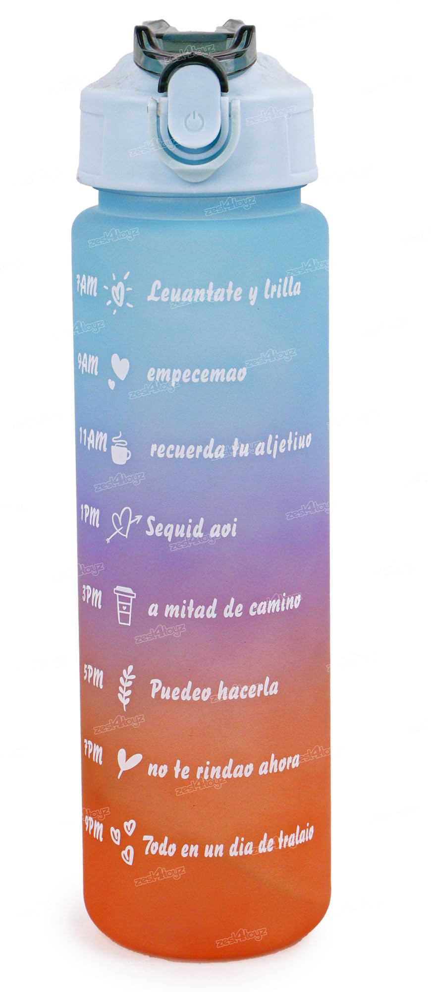 Zest 4 Toyz Water Bottle with Time Marker Sipper Strap Straw and Stickers, Leakproof Durable BPA Free Non-Toxic for Office Gym Travel Sports School for Kids Adults - 900 ml
