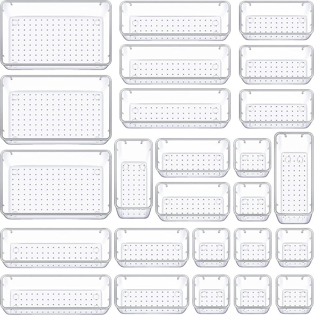 Zimtal Drawer Organizer (25) Set of 4 Size Versatile Desk Drawer Organizers and Storage Bins for Makeup, Bedroom, Jewelry, and Kitchen/Office Devices made of Clear Plastic (25 pcs)